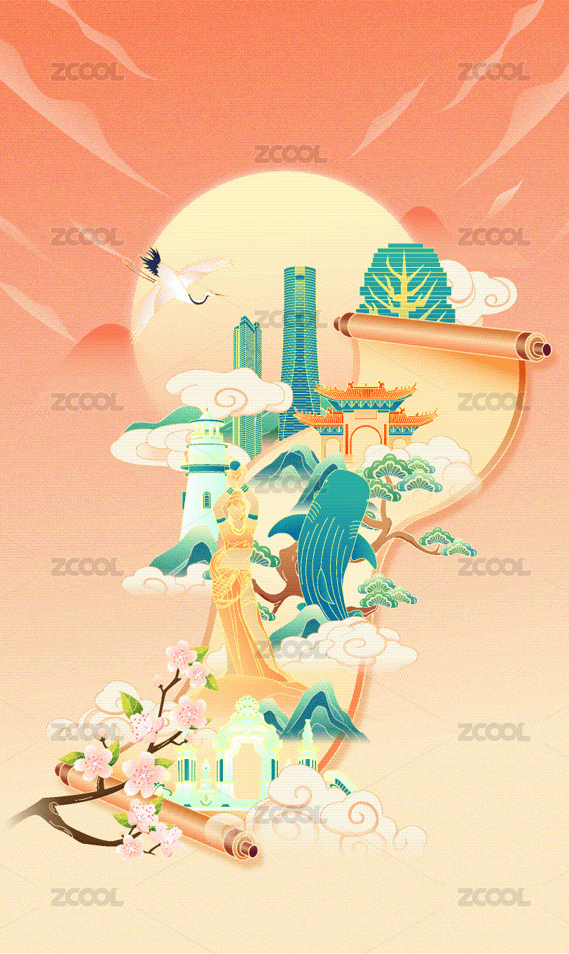 国朝风都市插画竖版