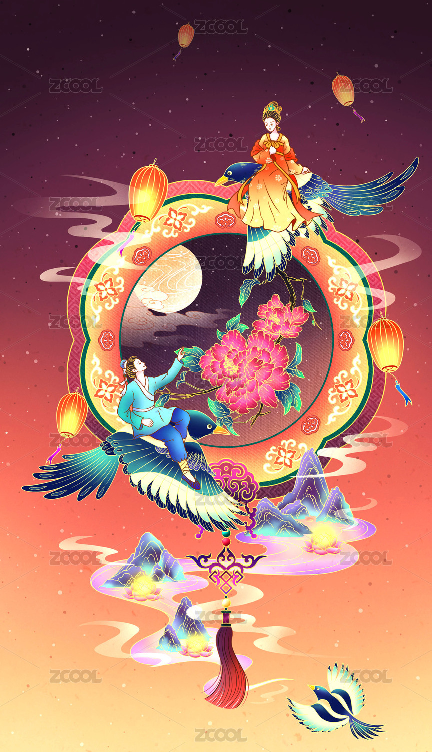 七夕情人节节日插画