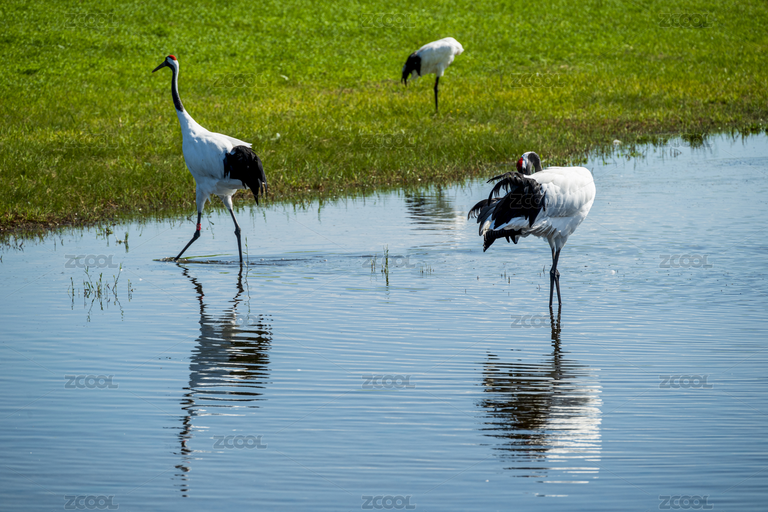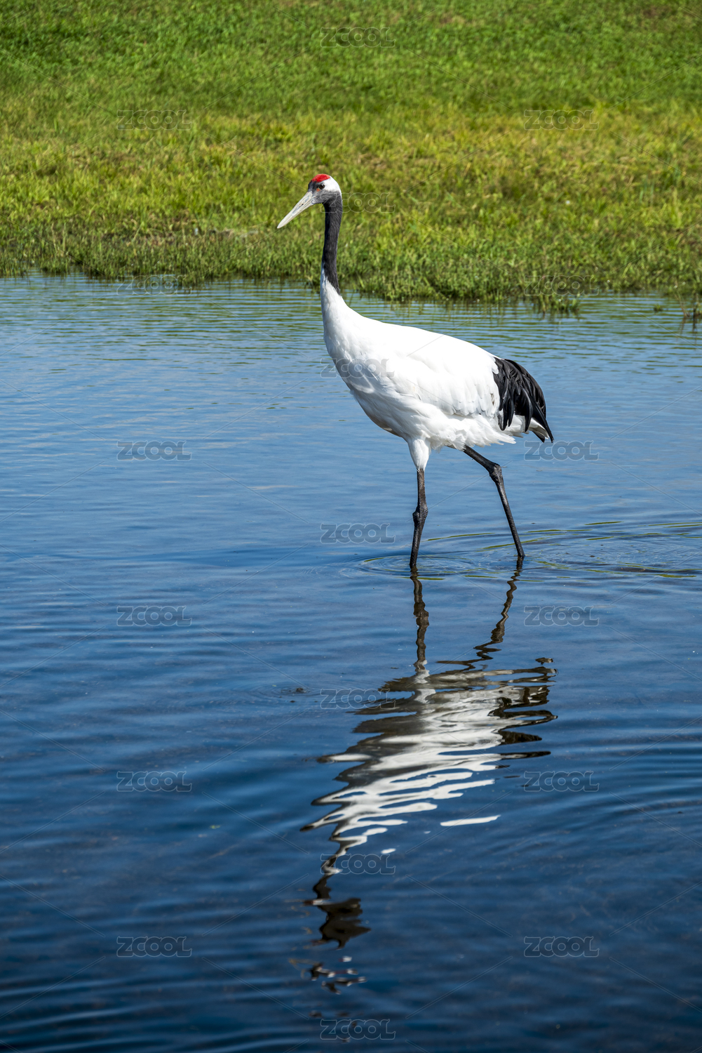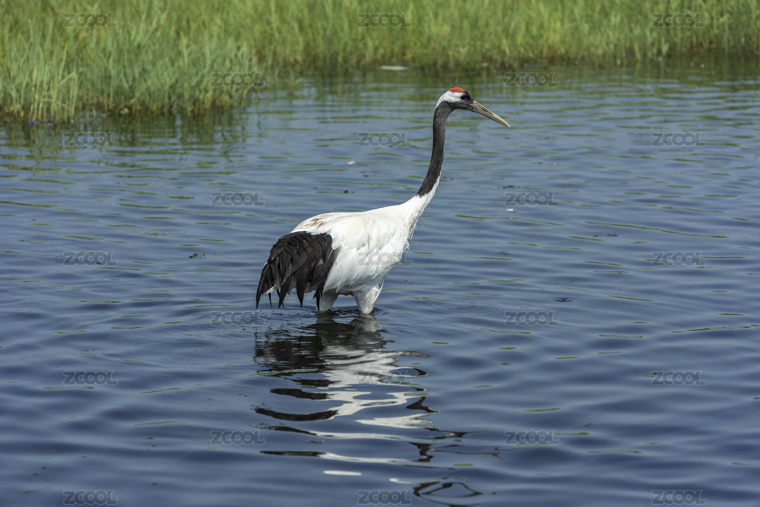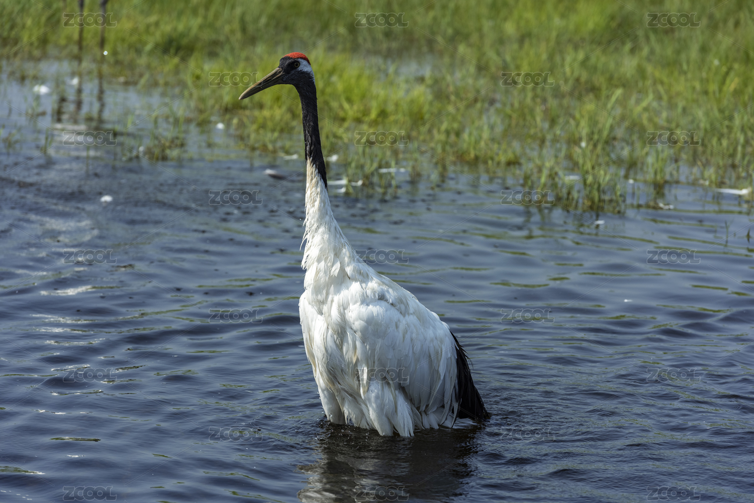 湖中寻食的丹顶鹤