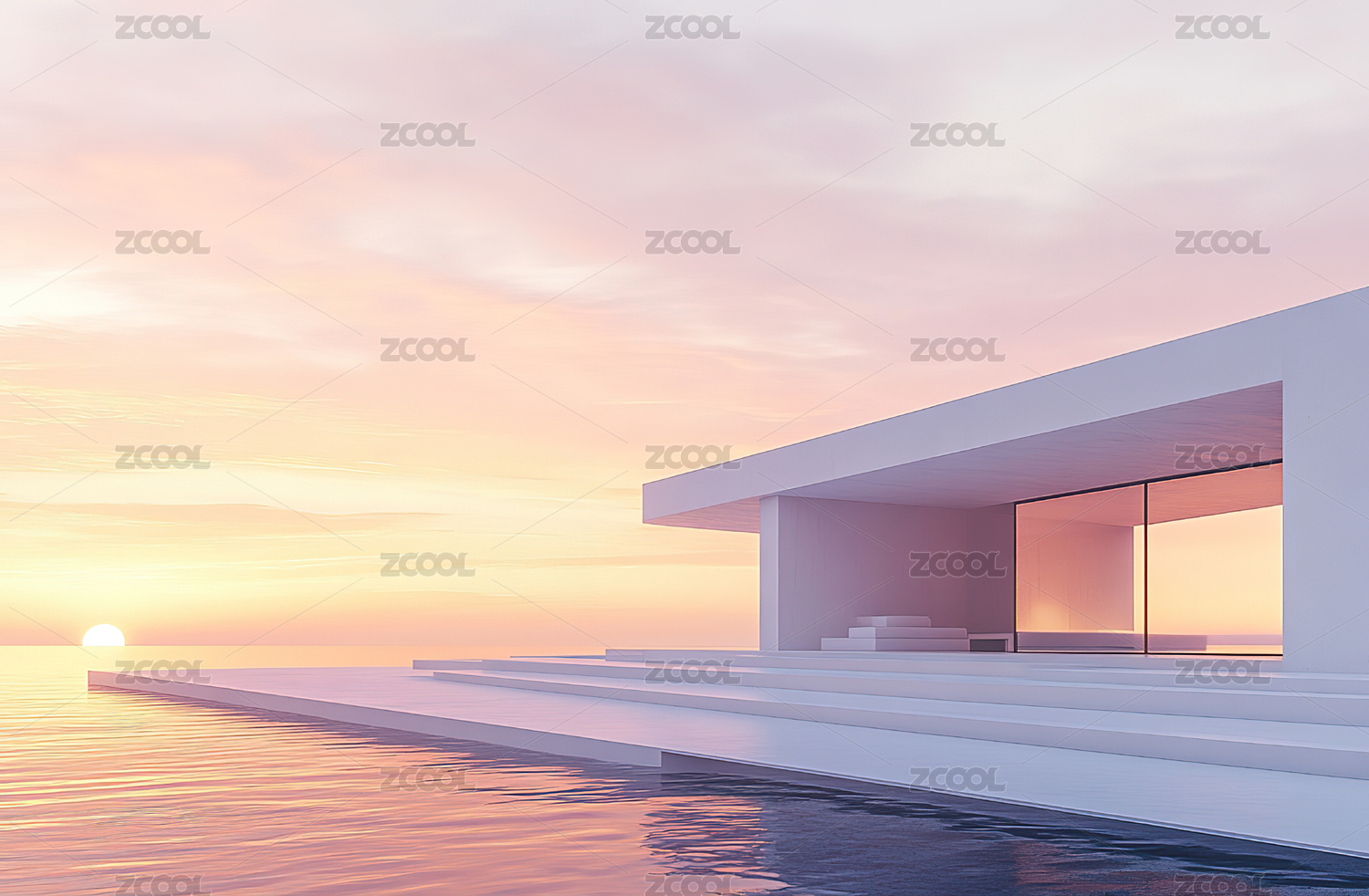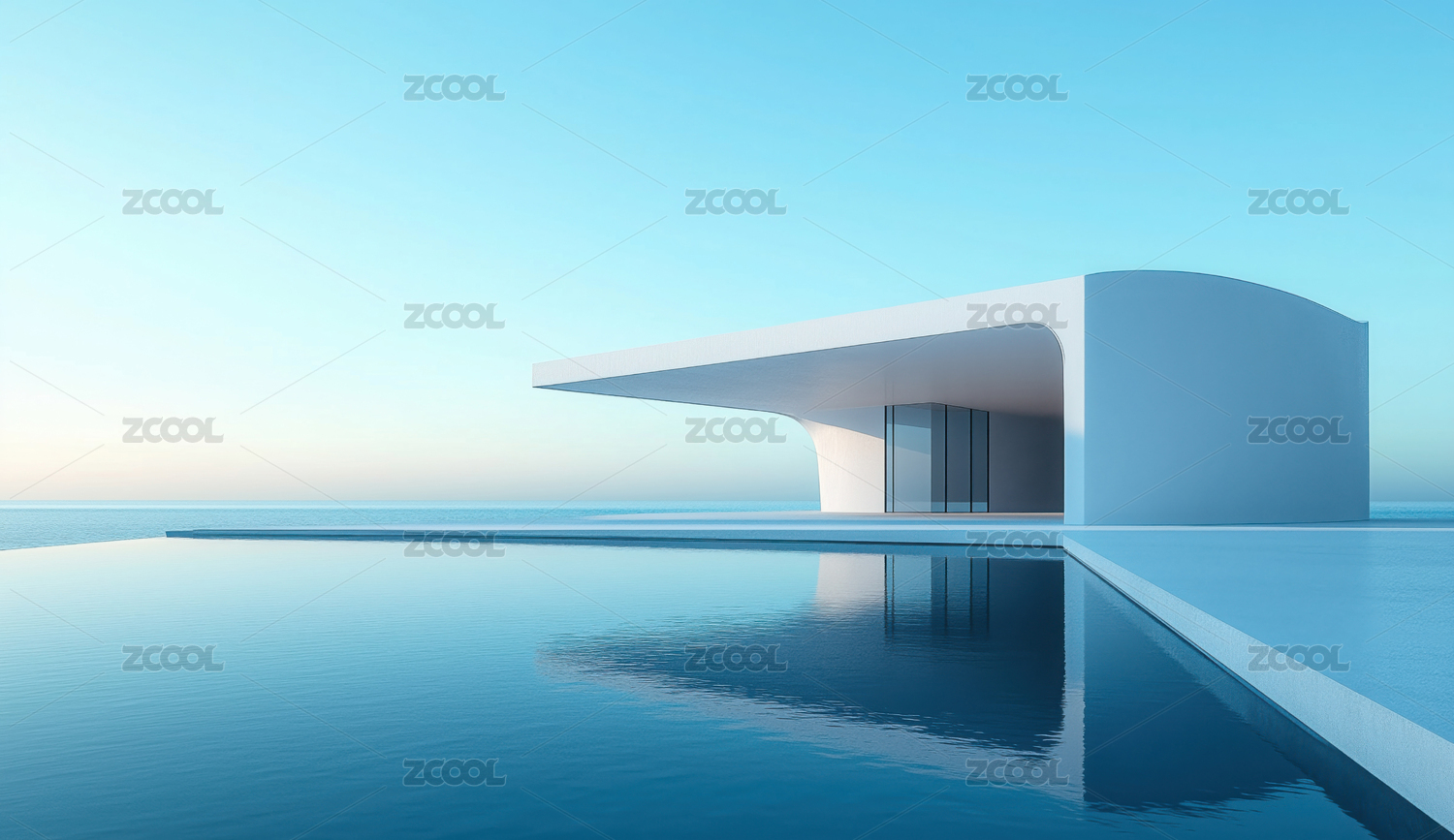 现代,建筑,室外,设计,酒店,餐厅,白色,插画,别墅,简约