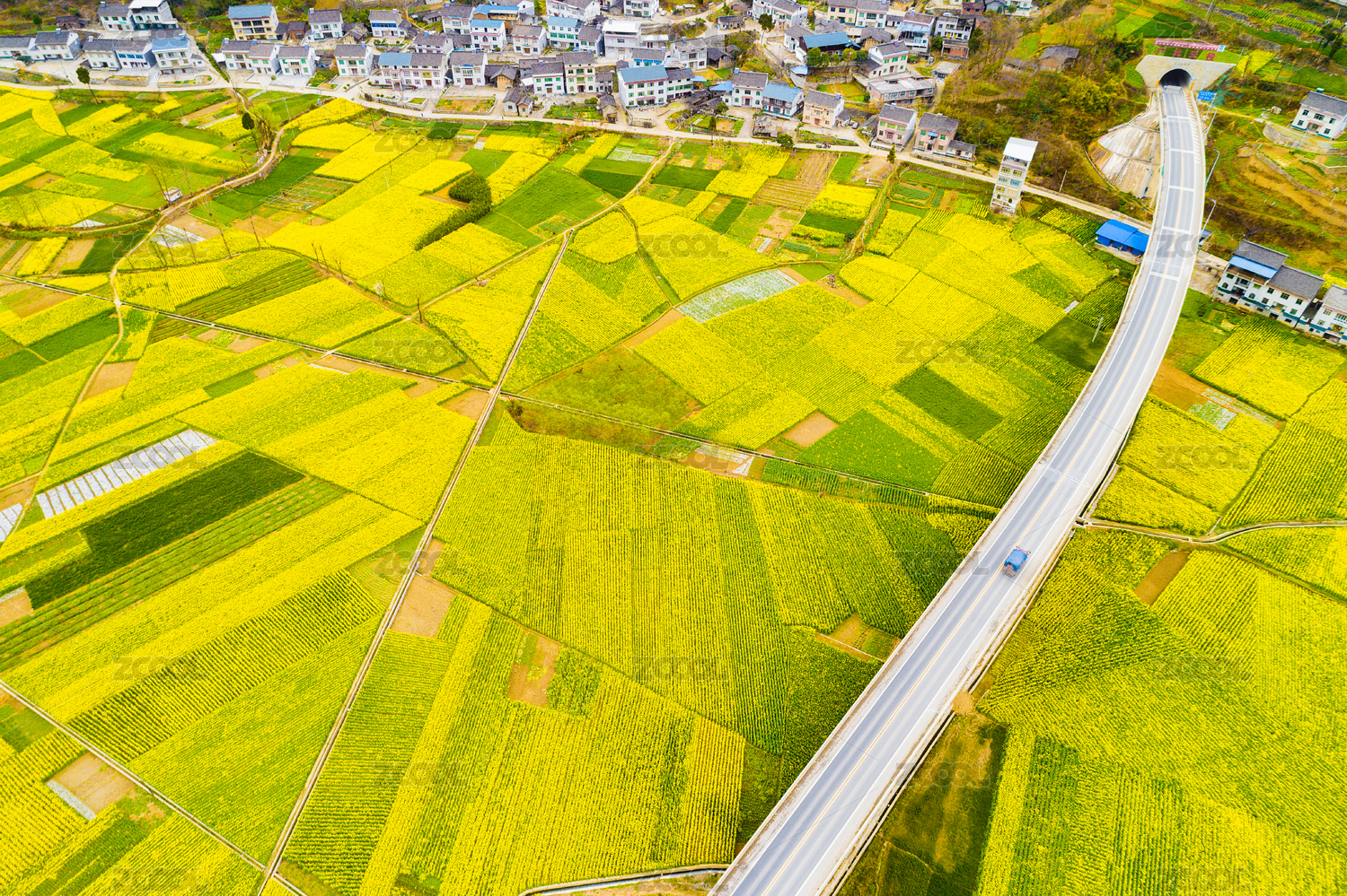 油菜花,风光,陕西风光,金黄色,农村,乡村,绿色的,美丽乡村,航拍汉中,春天