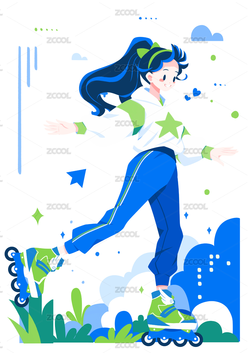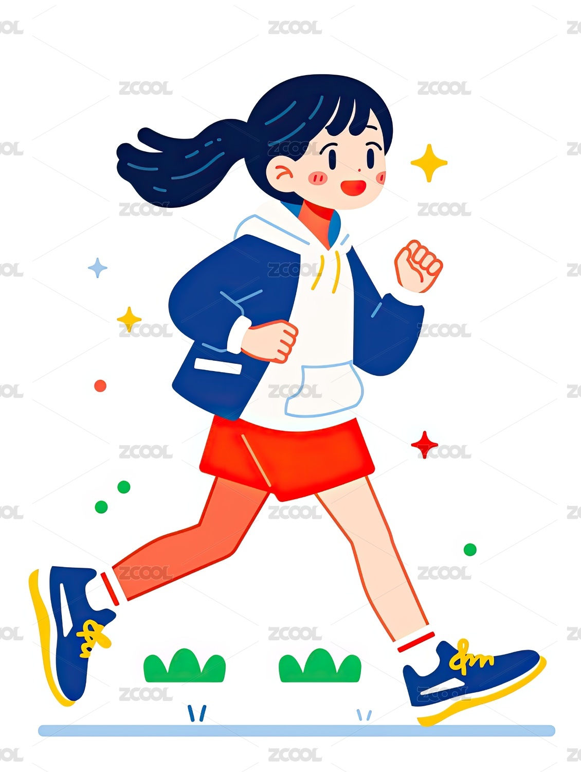 女孩,女生,年轻,奔跑,开心,跑步,快乐,卡通,设计,人物