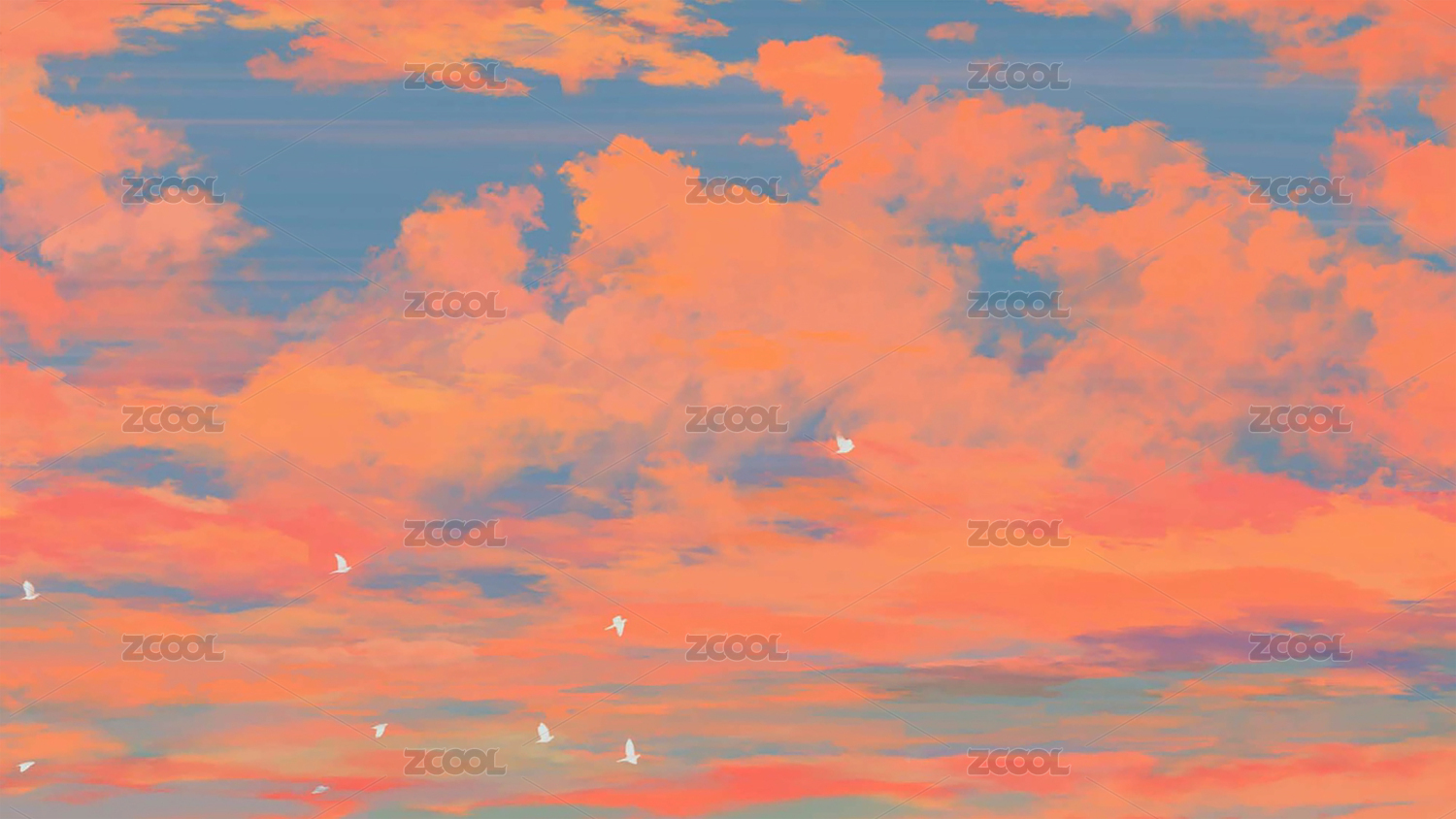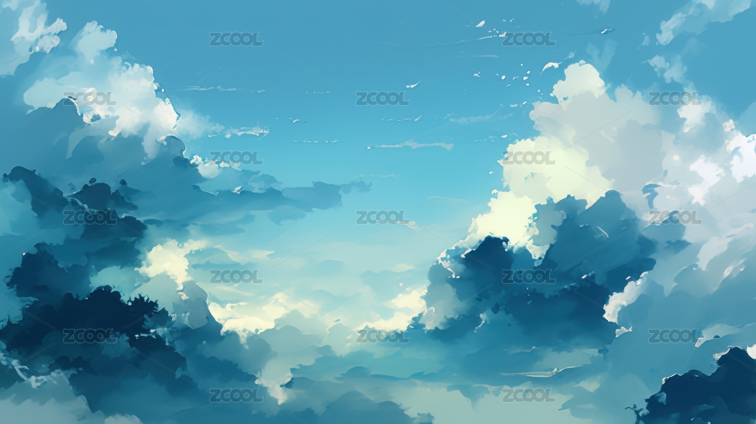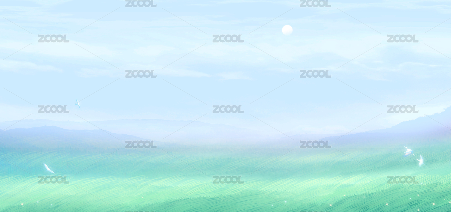 蓝蓝的天空下是壮阔的绿色草原和山峰插画背景