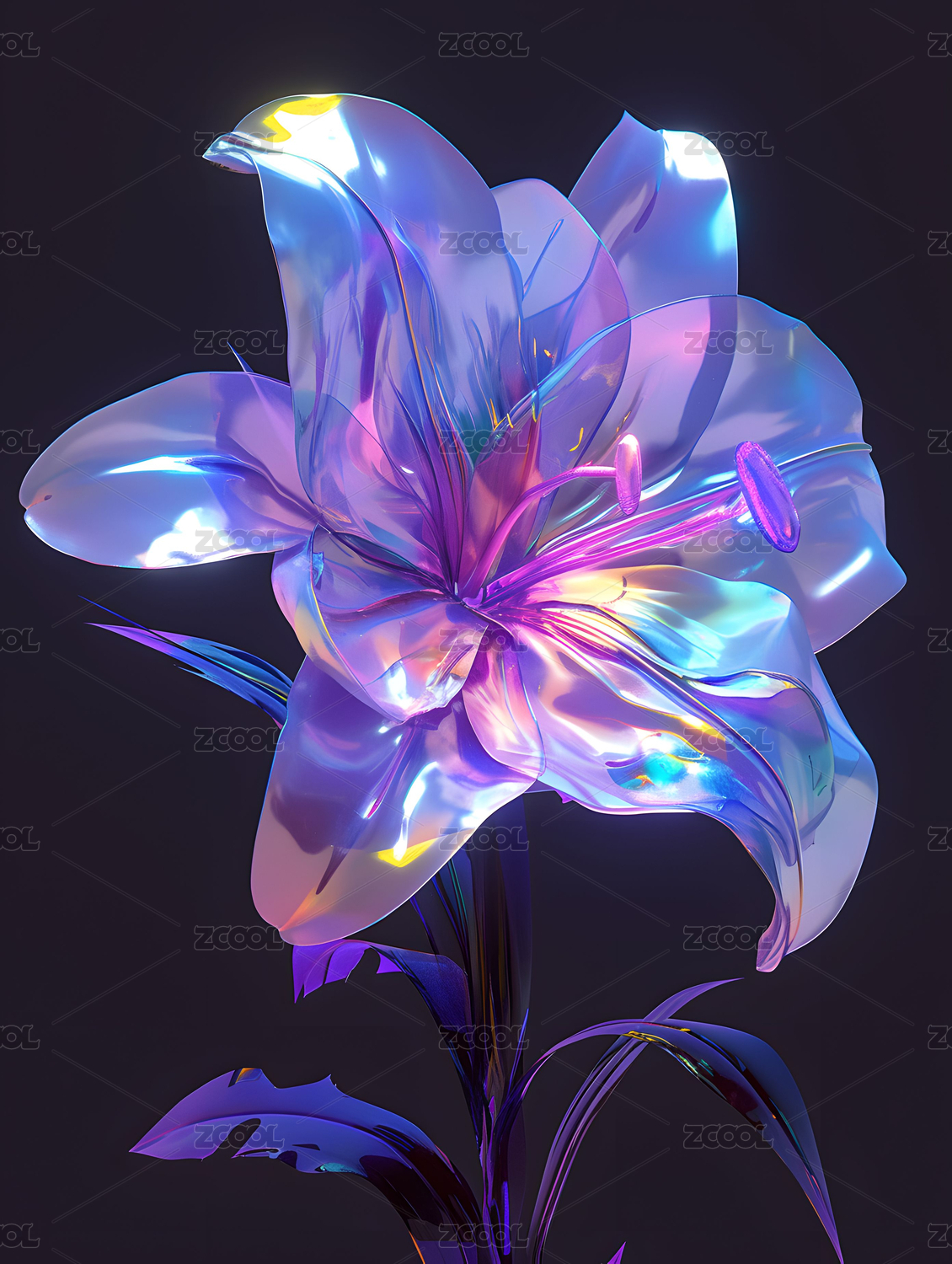 白底抽象玻璃粉色透明花卉植物3D立体插画