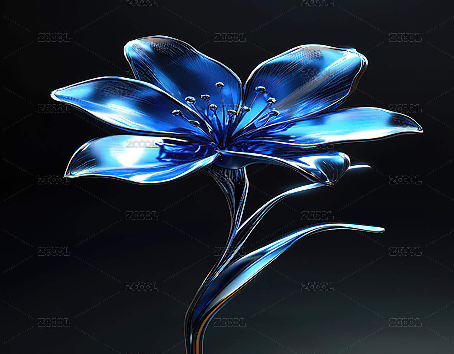 3D立体透明玻璃三维质感光感蓝玫瑰花