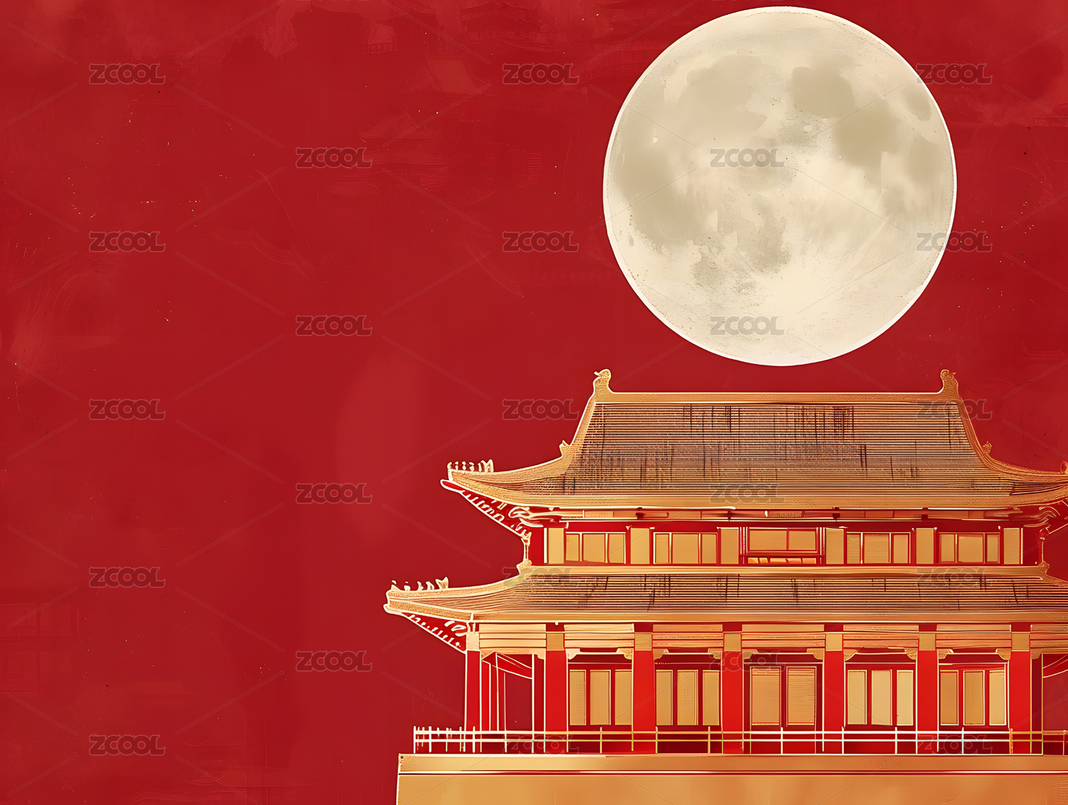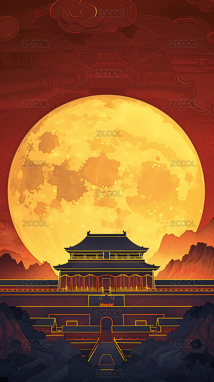 国潮喜庆节日中秋节日国风建筑插画