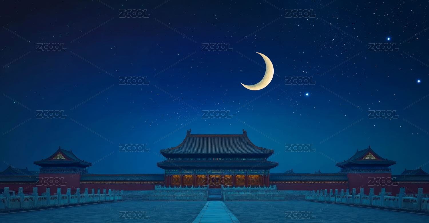 故宫月夜国风插画