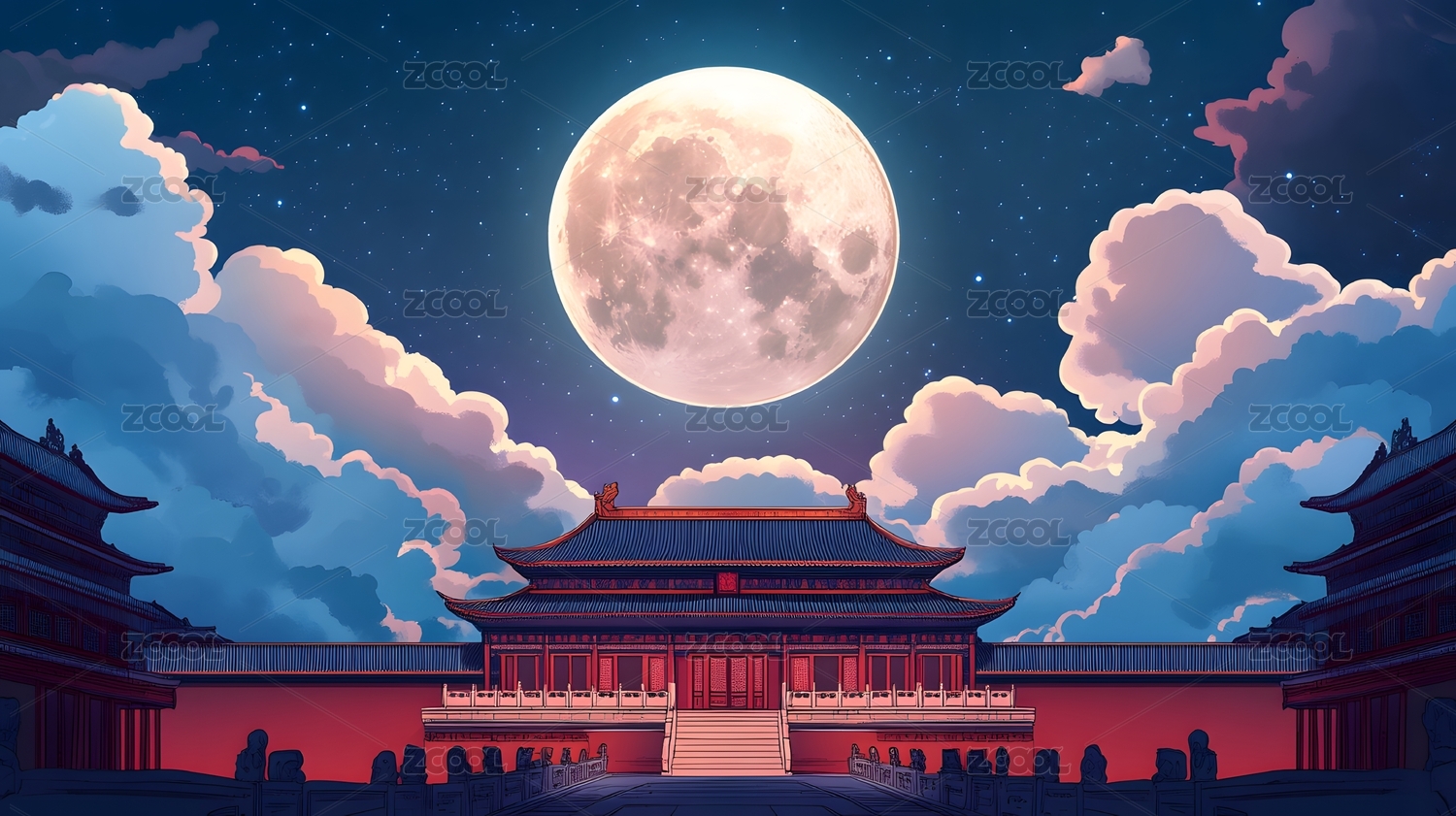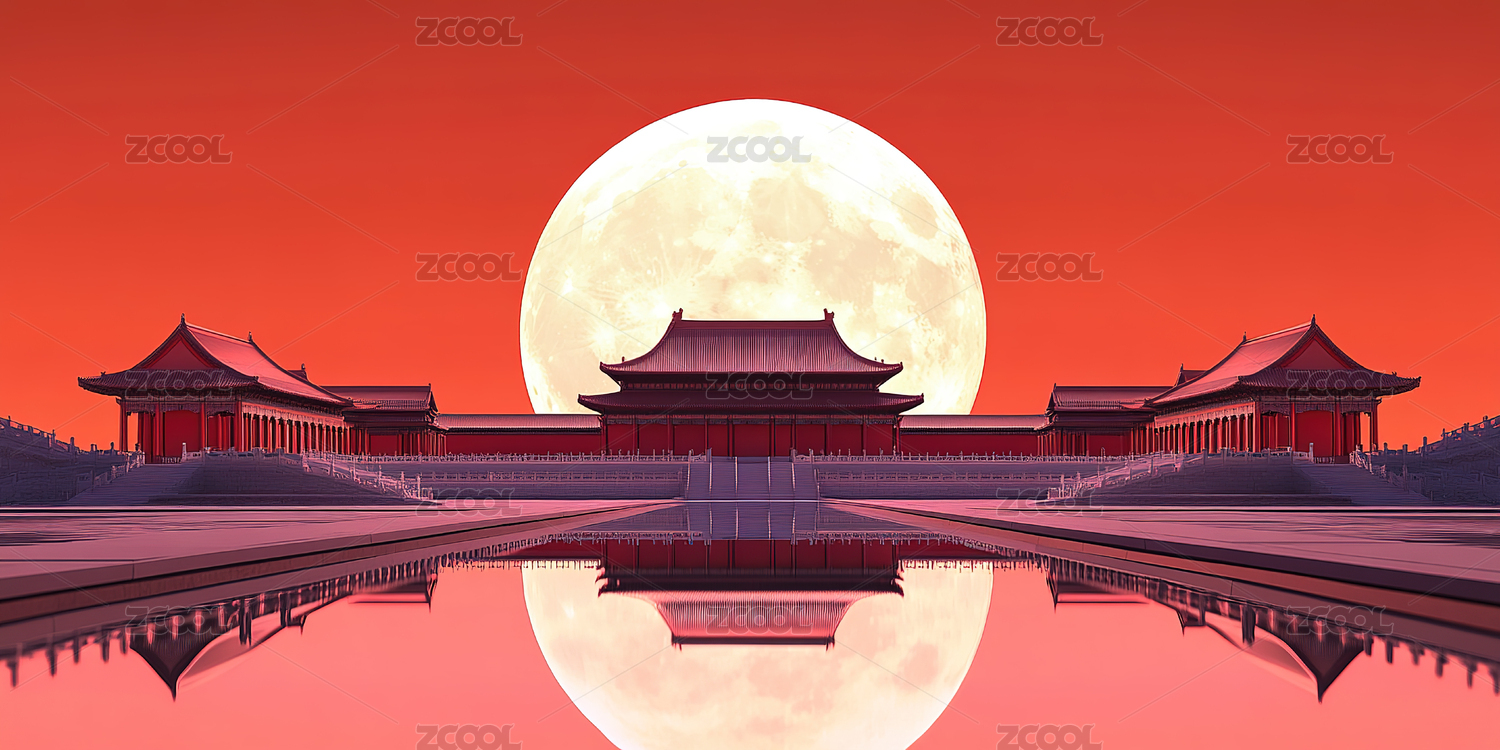 中秋节月亮宫殿插画背景
