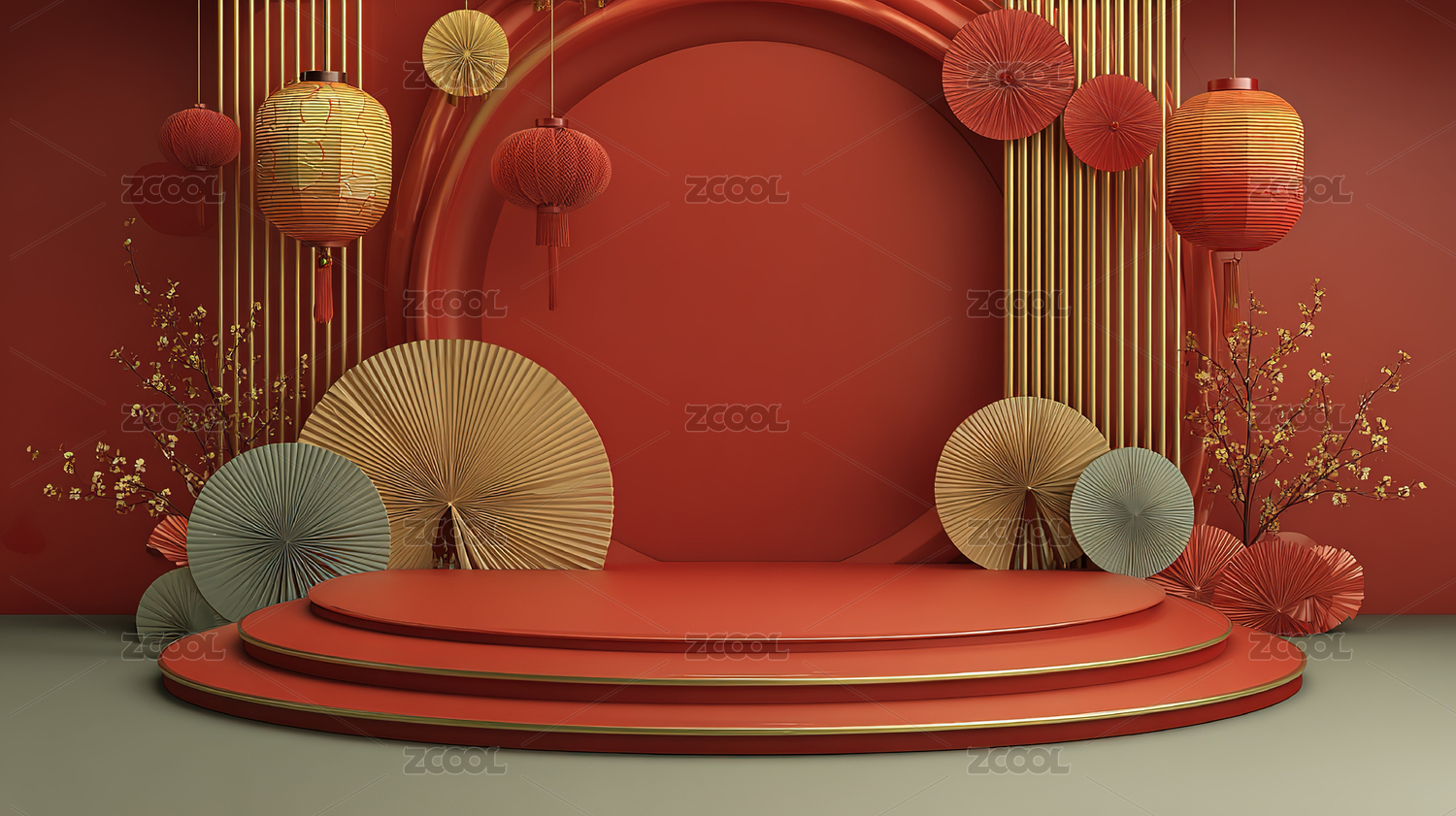 插画,产品展台,促销,节日,红色,春节