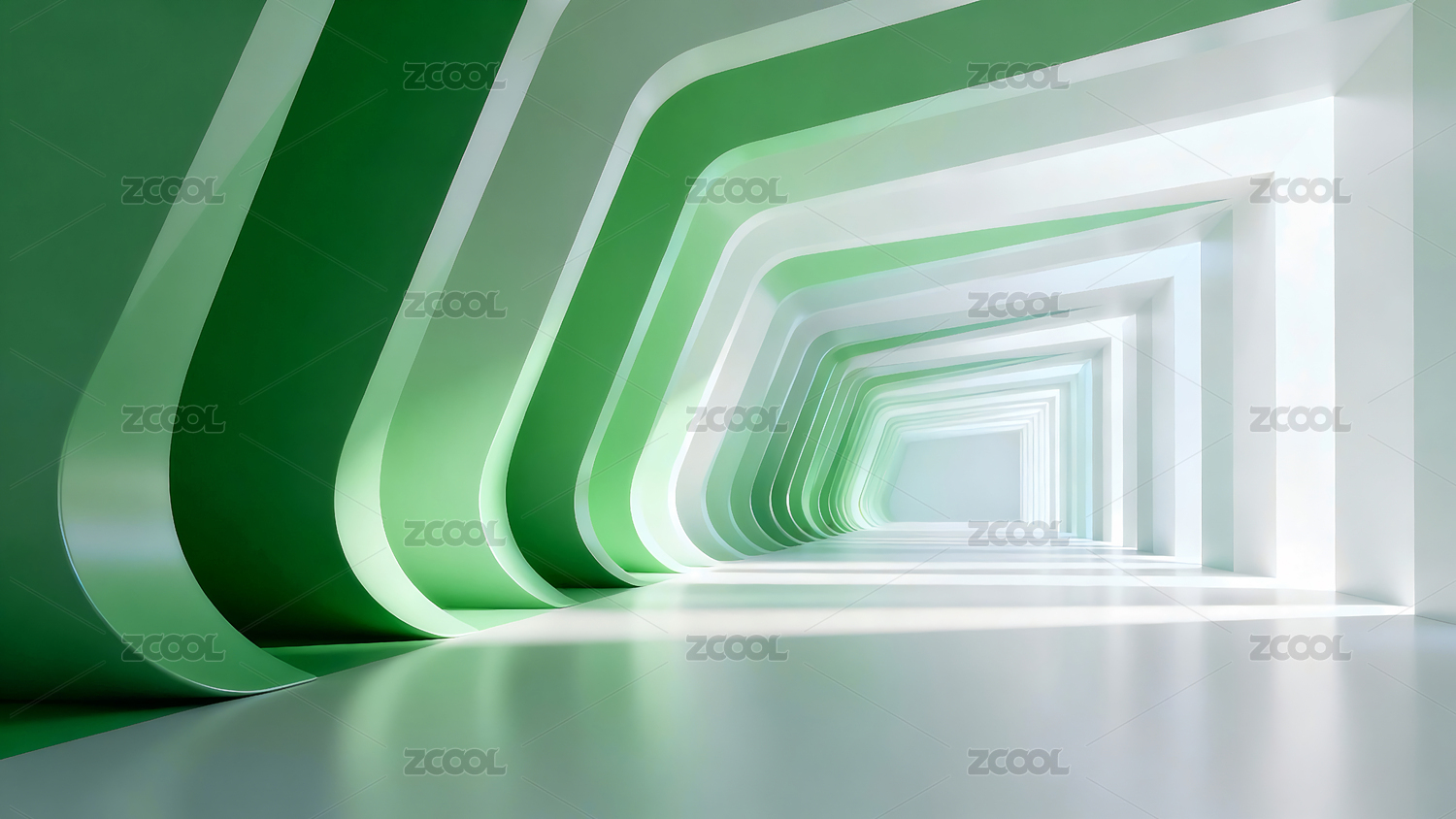 抽象绿色隧道走廊三维场景
