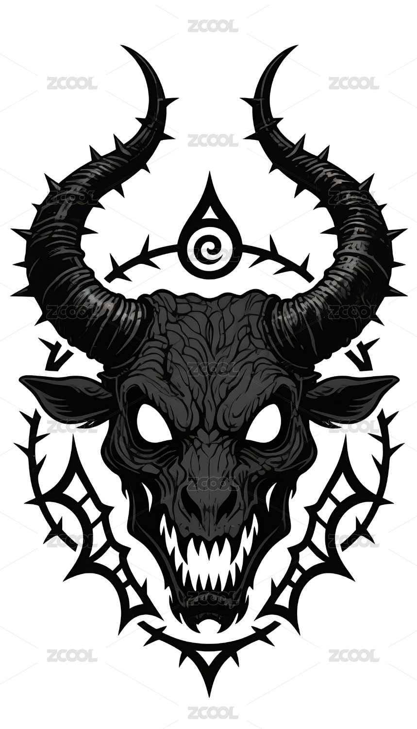 北美野牛头像徽章矢量插画风格装饰印花插画