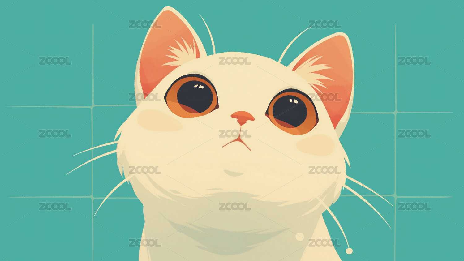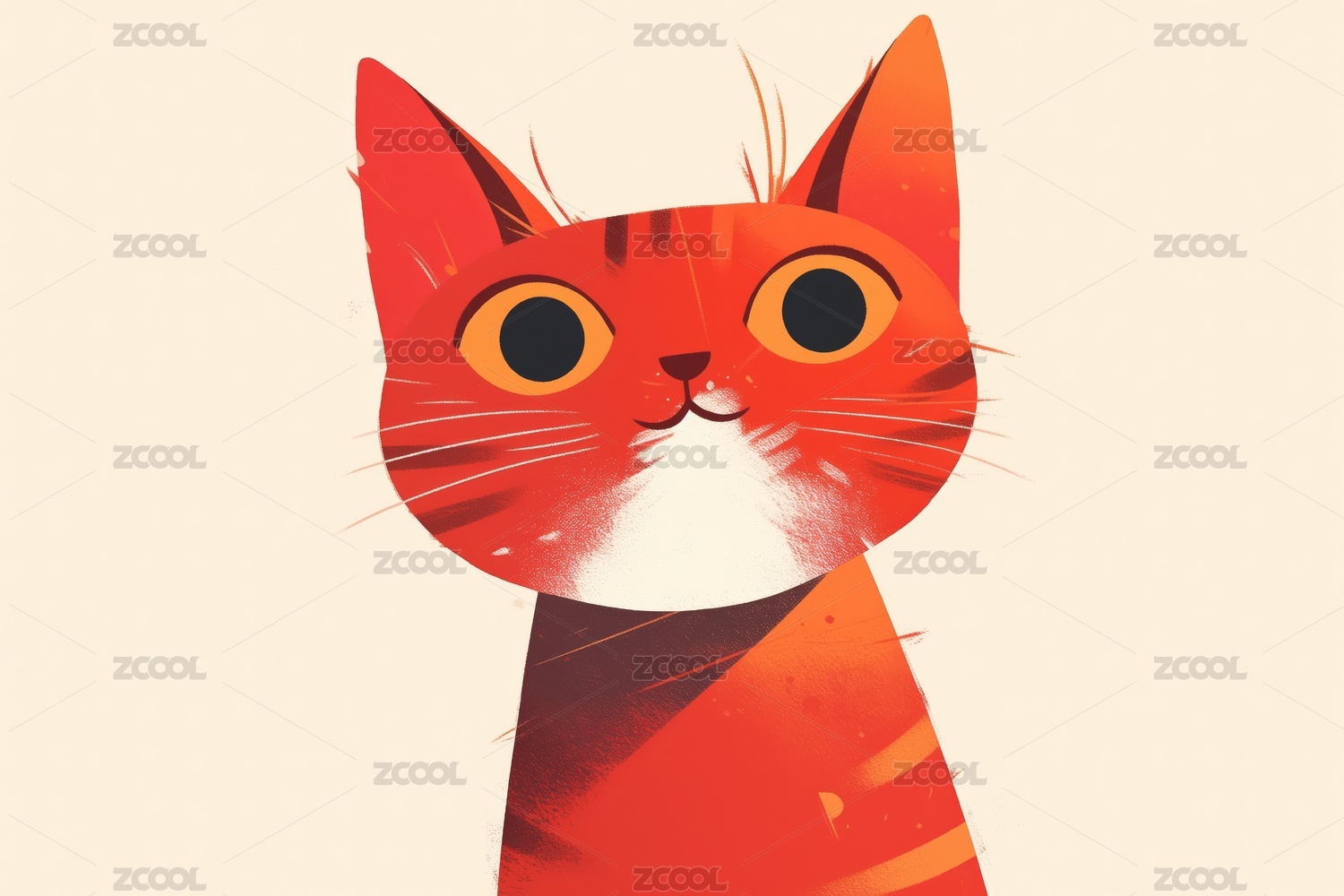 扁平小猫插画明亮一只可爱宠物猫绘画