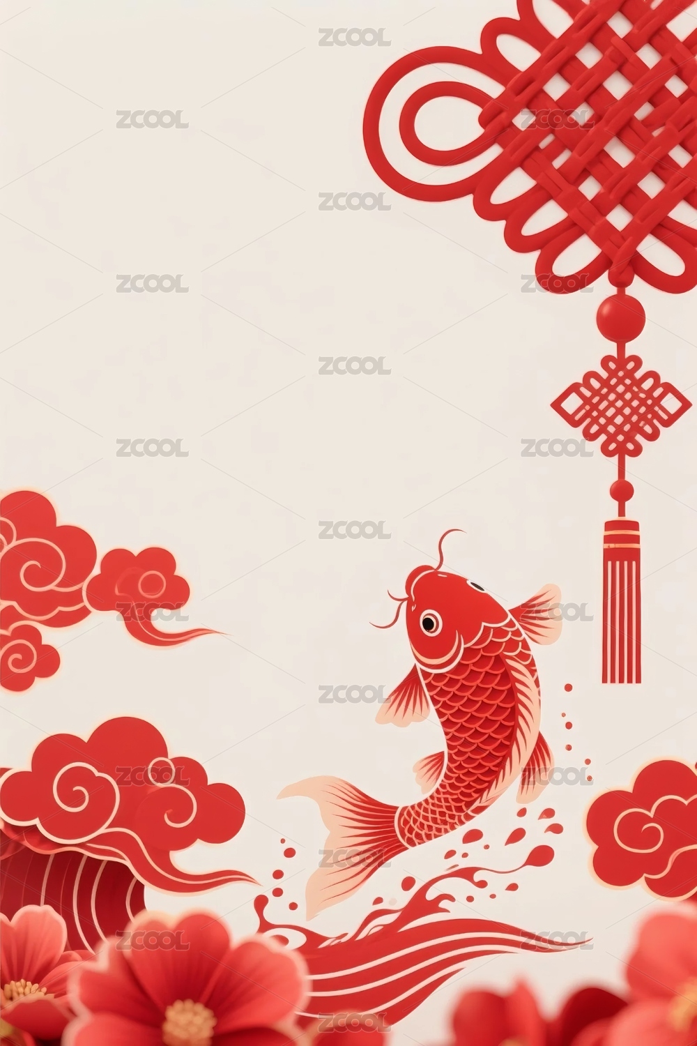 红色鲤鱼中国结祥云背景