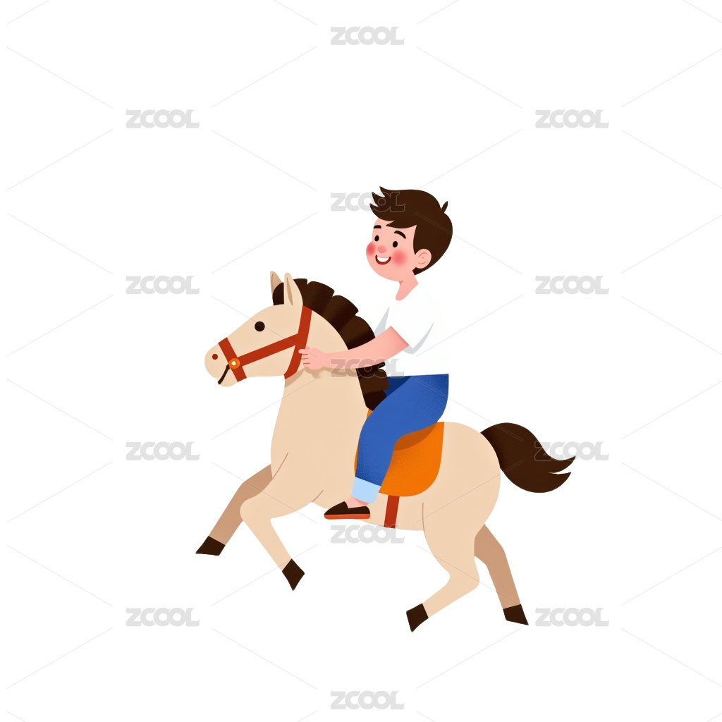 卡通中国风唐朝仕女夫人奔马嬉戏图