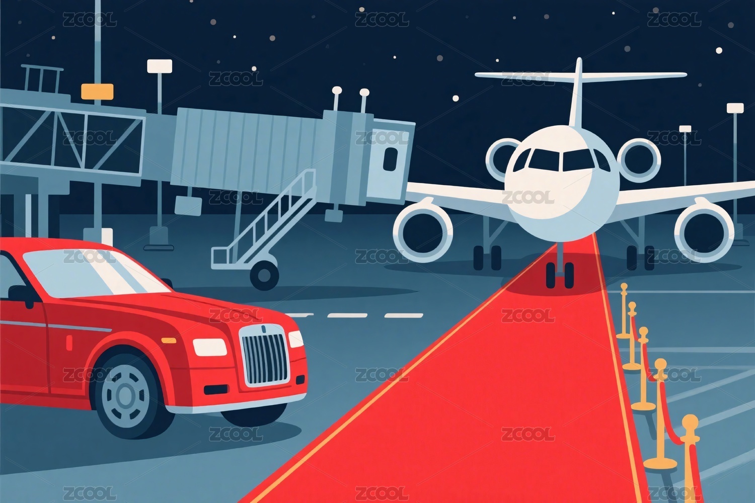 机场红毯与飞机插画