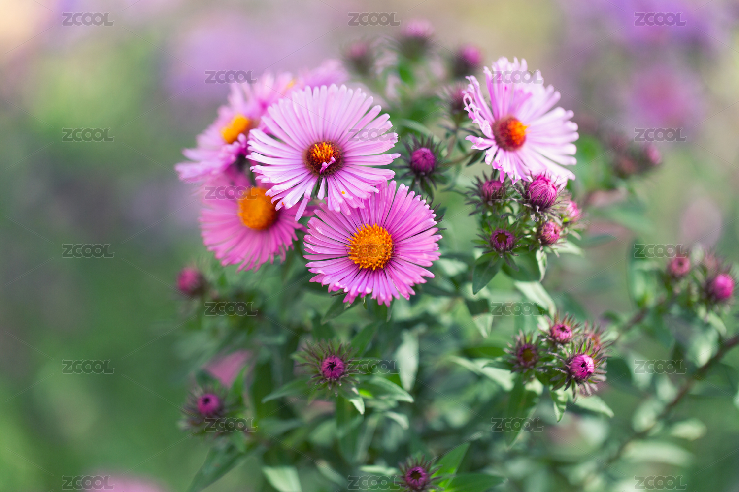 紫菀花朵特写,粉紫色菊花鲜花特写
