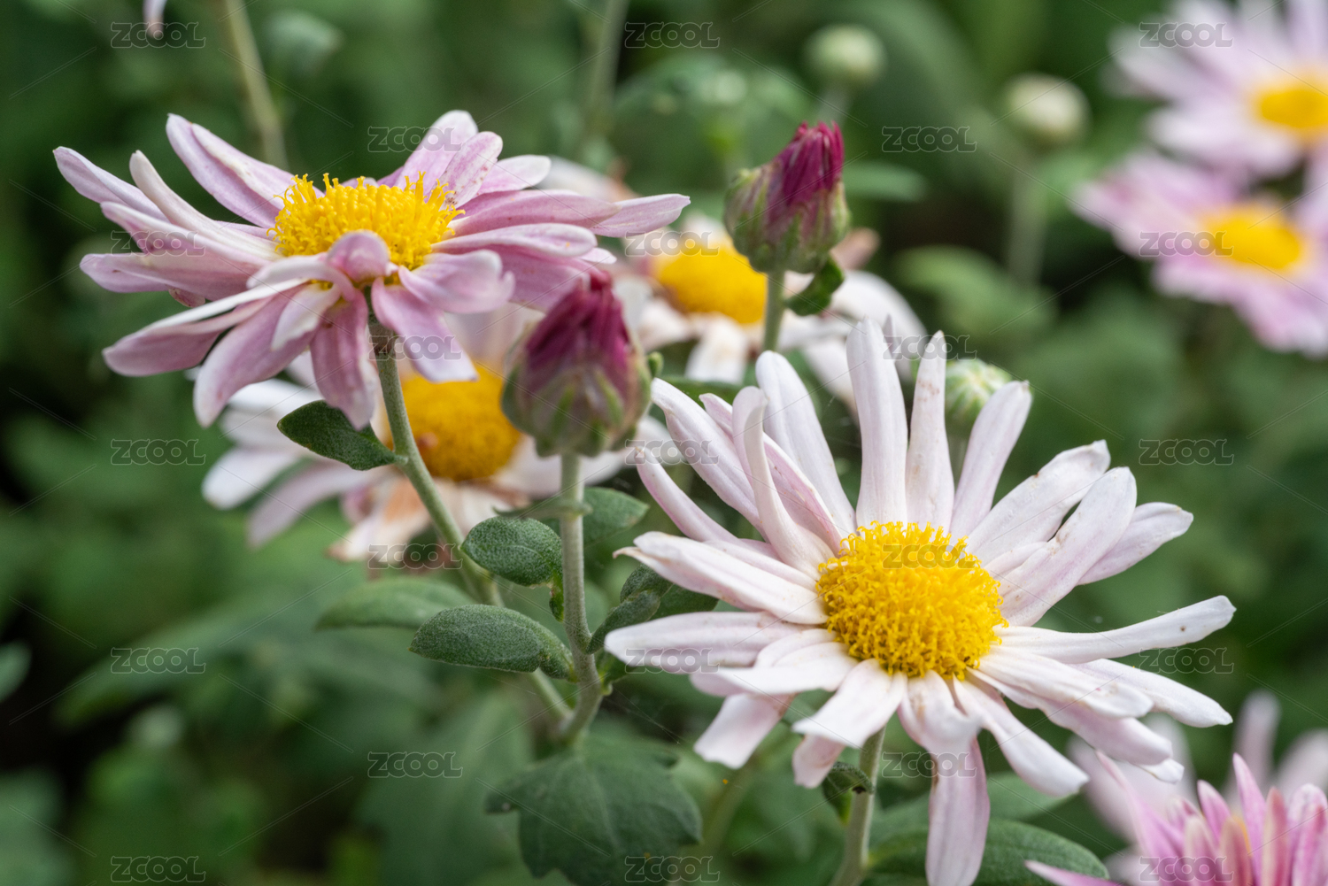大自然里粉色的盛开菊花花卉特写