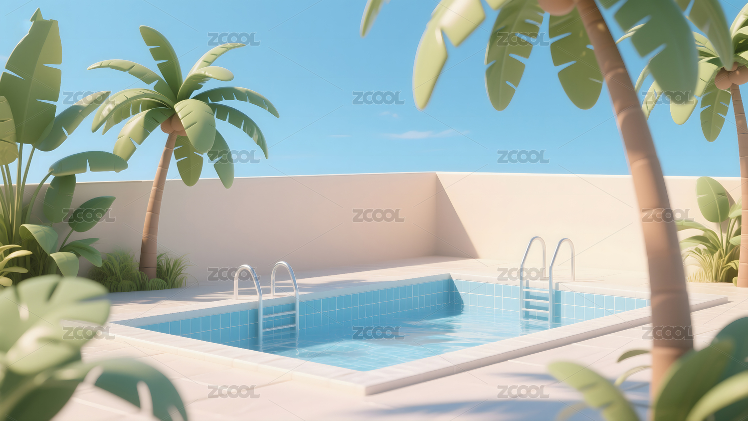 游泳池,晴天,云朵,蓝天,楼梯,清澈,室外,休闲,夏日