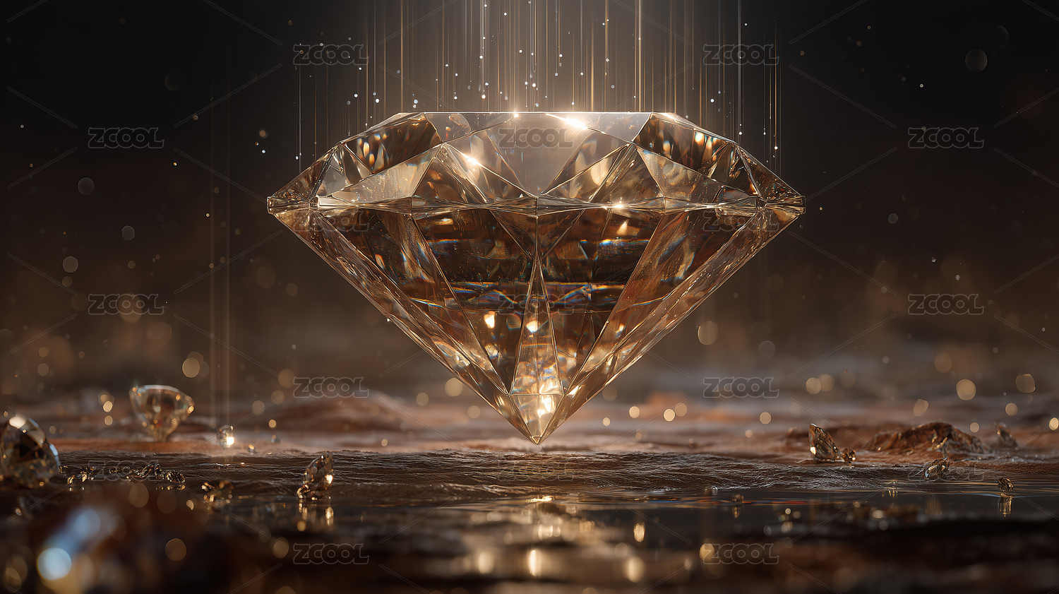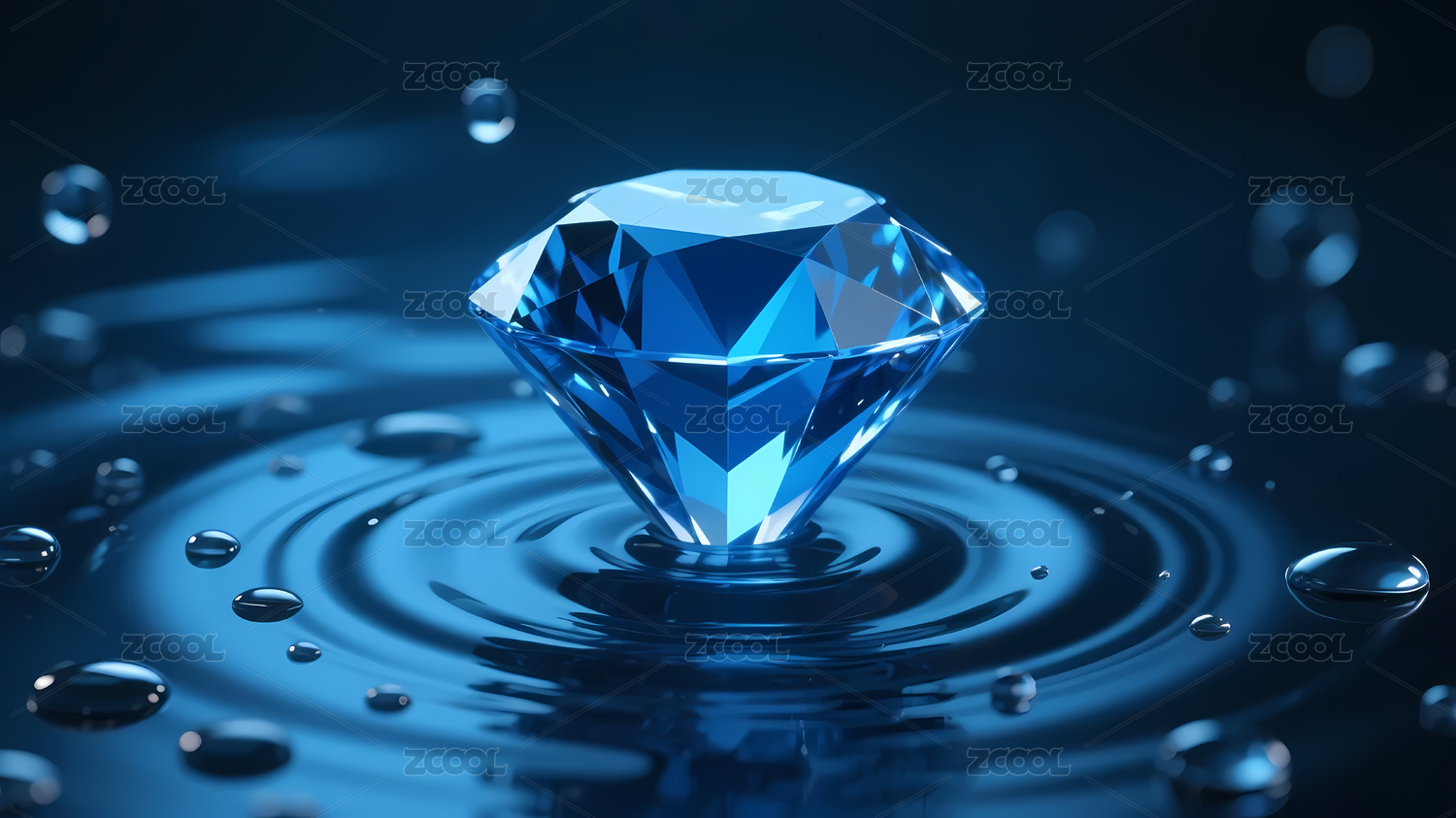 璀璨夺目的蓝色钻石晶莹剔透的水珠倒影
