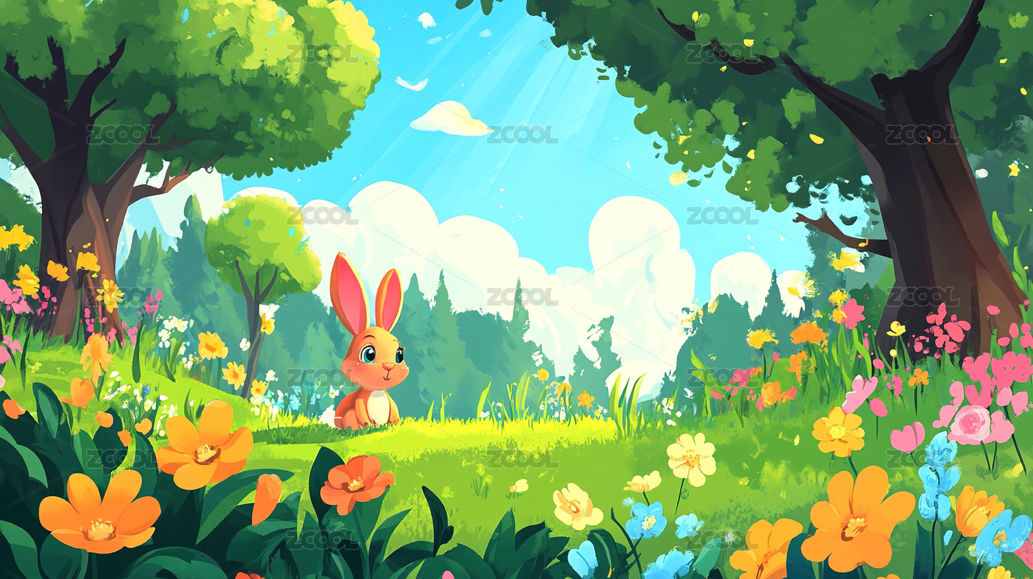 卡通,可爱,微笑,开心,DXCZ202402,复活节,彩蛋,鸡蛋,兔子,草地