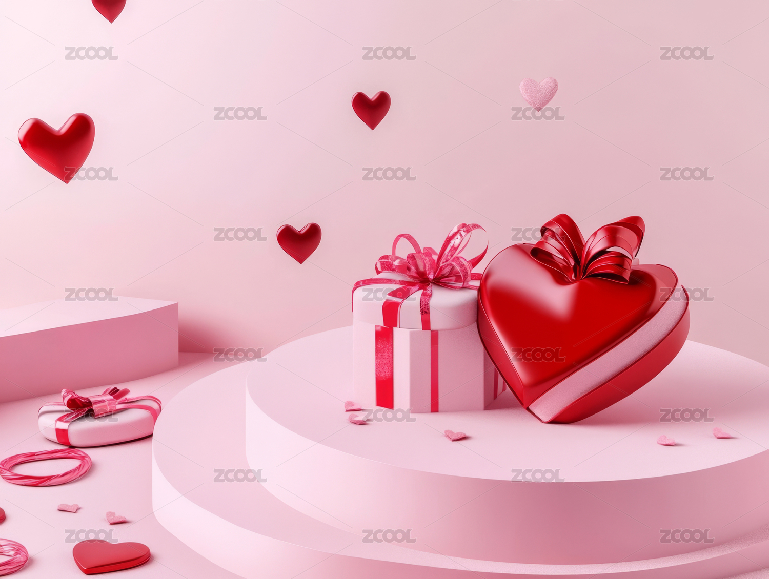 七夕情人节带气球的礼物盒展台爱情主题背景