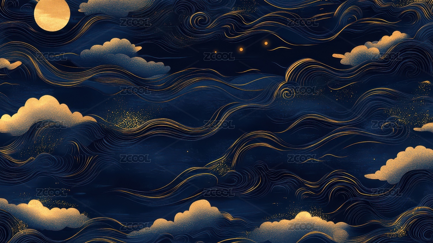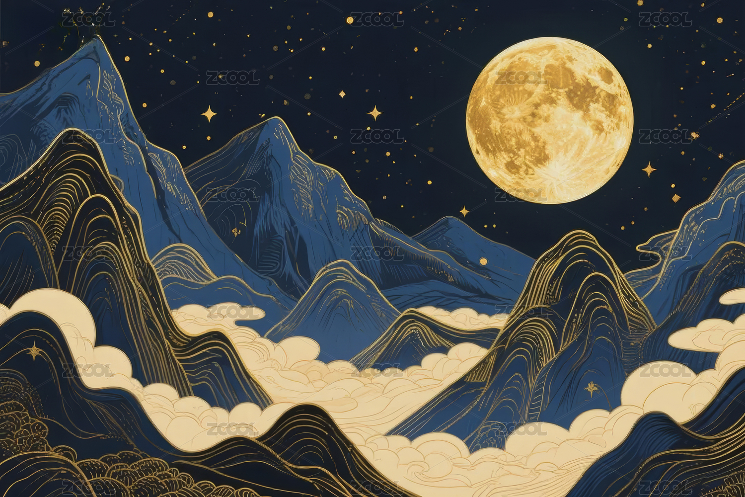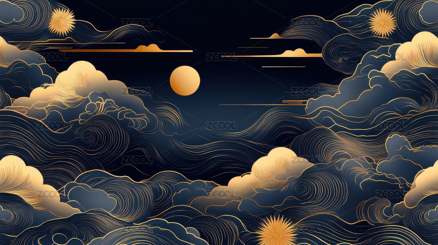 AI数字艺术,背景,传统,中国文化,国风,中秋节,云,红色,节日,中国画