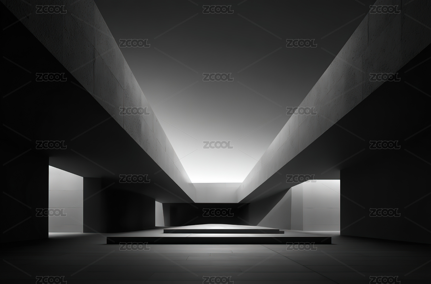 充满纵深感与艺术感的黑白光影走廊