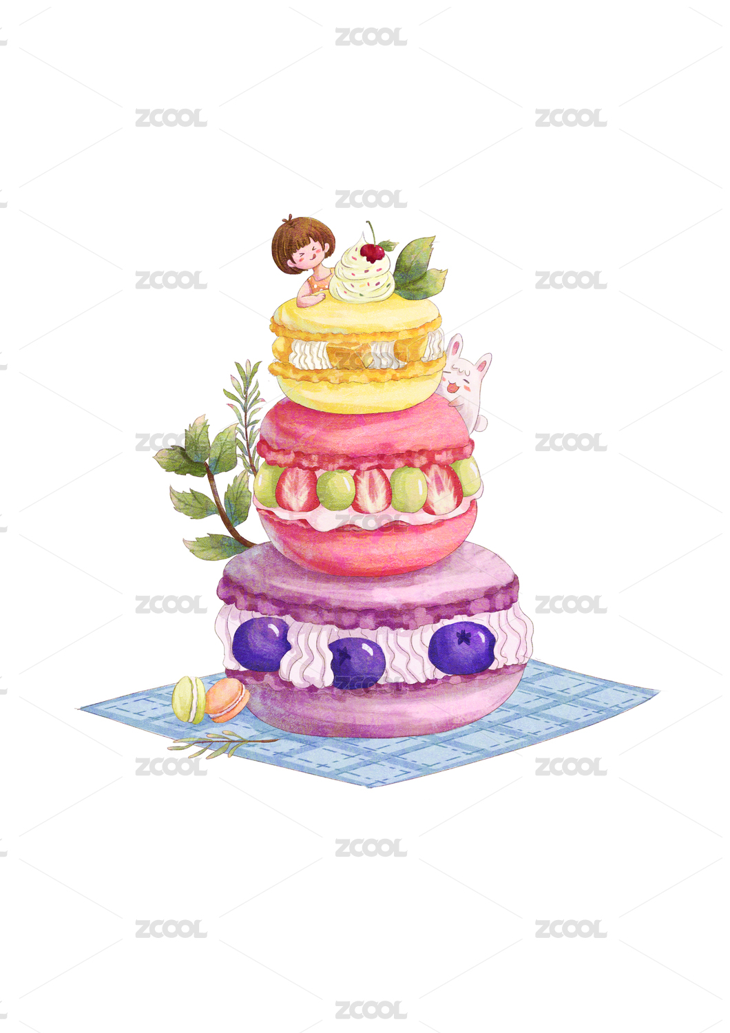 夏天清新可爱风格水果马卡龙儿童插画