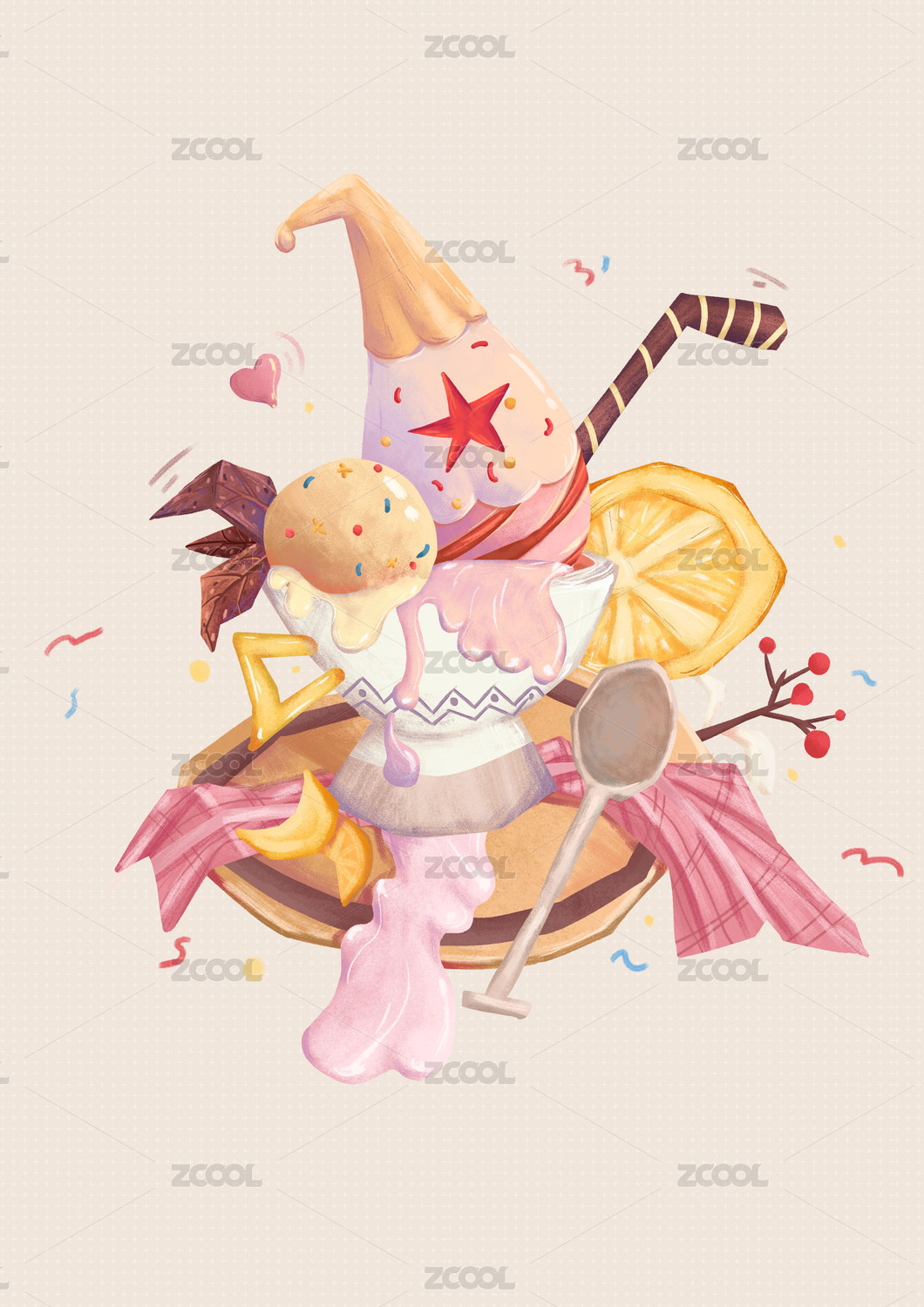 夏日美味冰激凌 插画