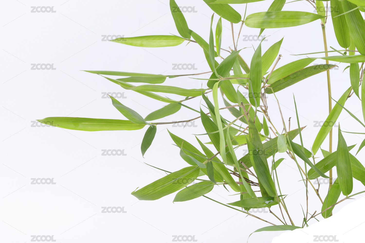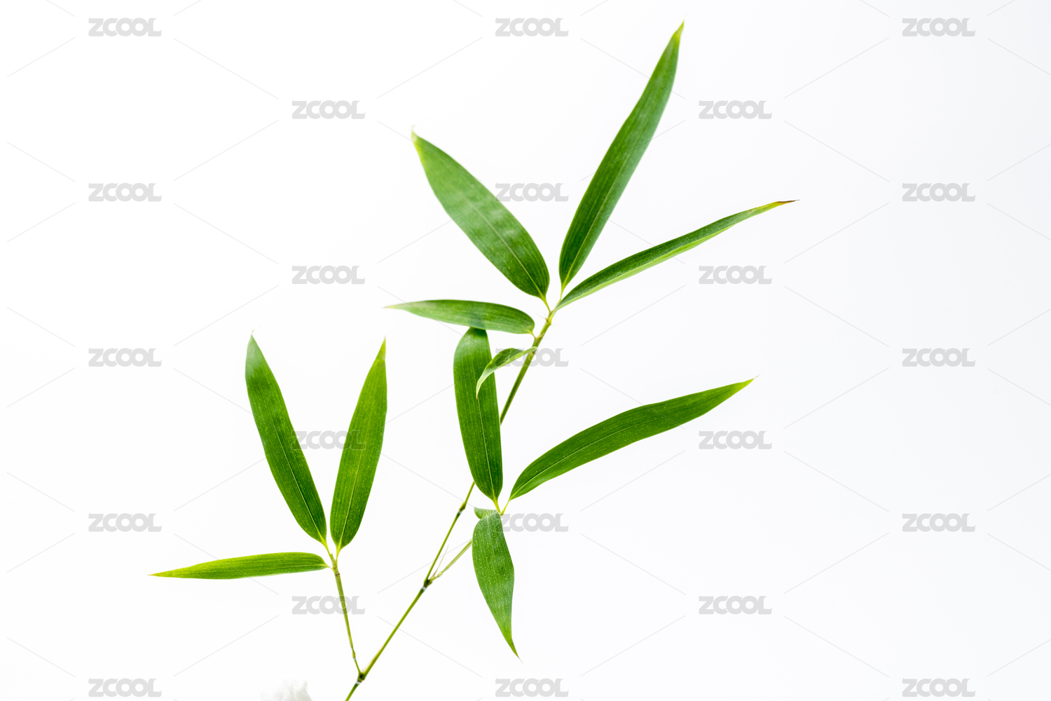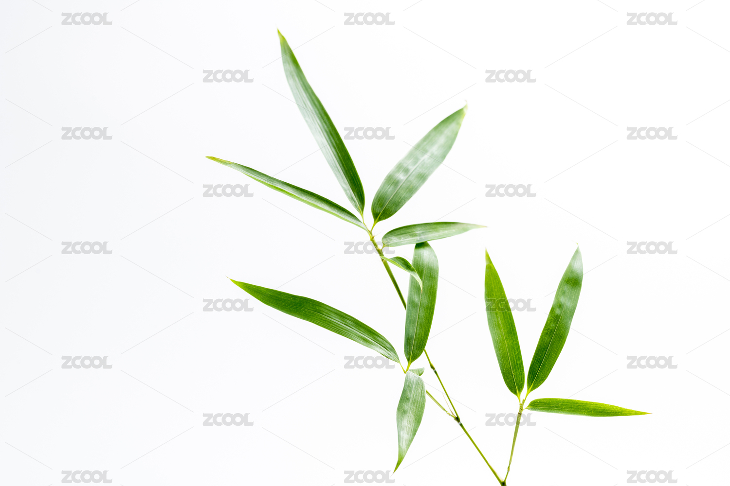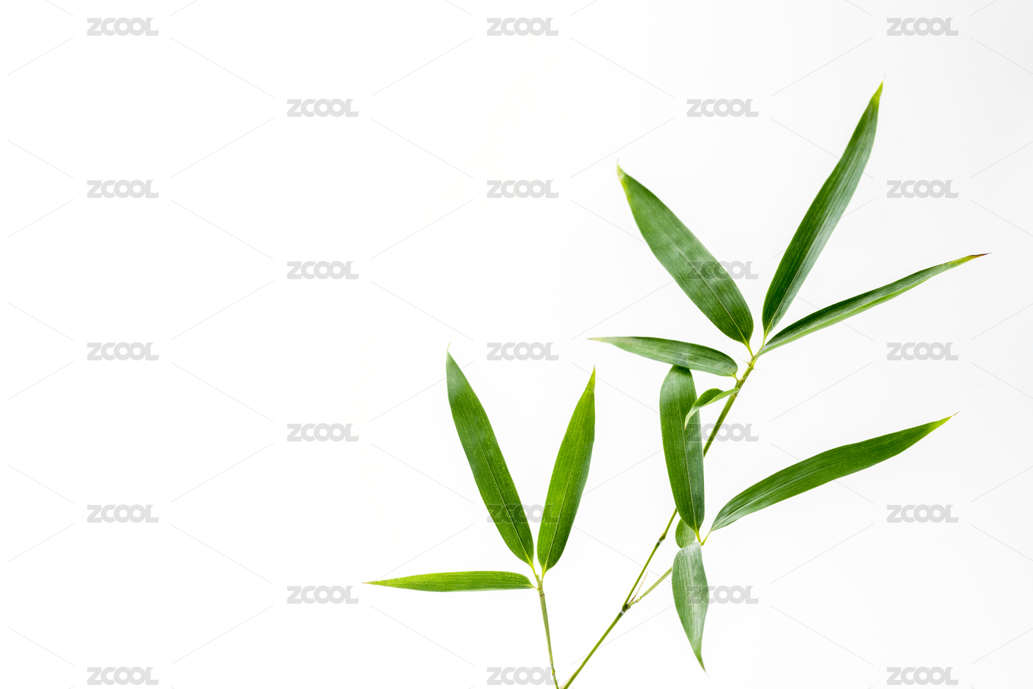 绿色竹叶的特写和白色的背景,中国传统文化中君子的象征