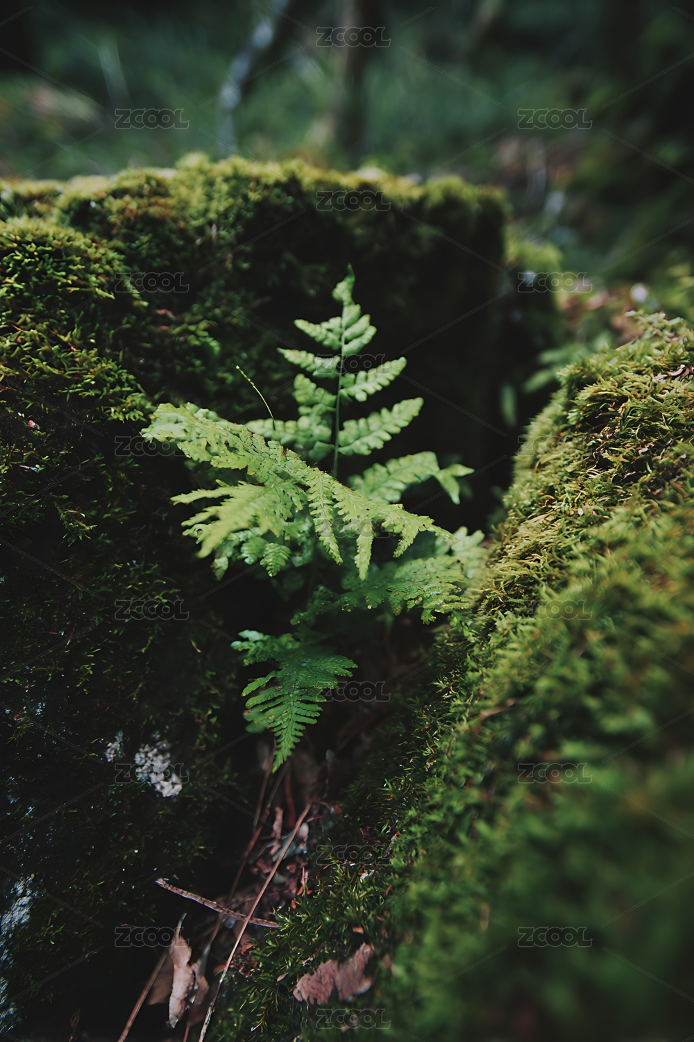 岩石上的嫩绿蕨类植物