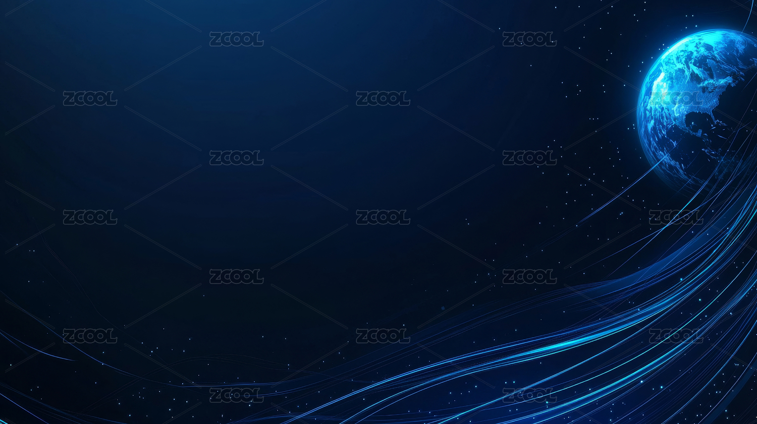 蓝色科技地球背景闪光线条数据通讯年会主视