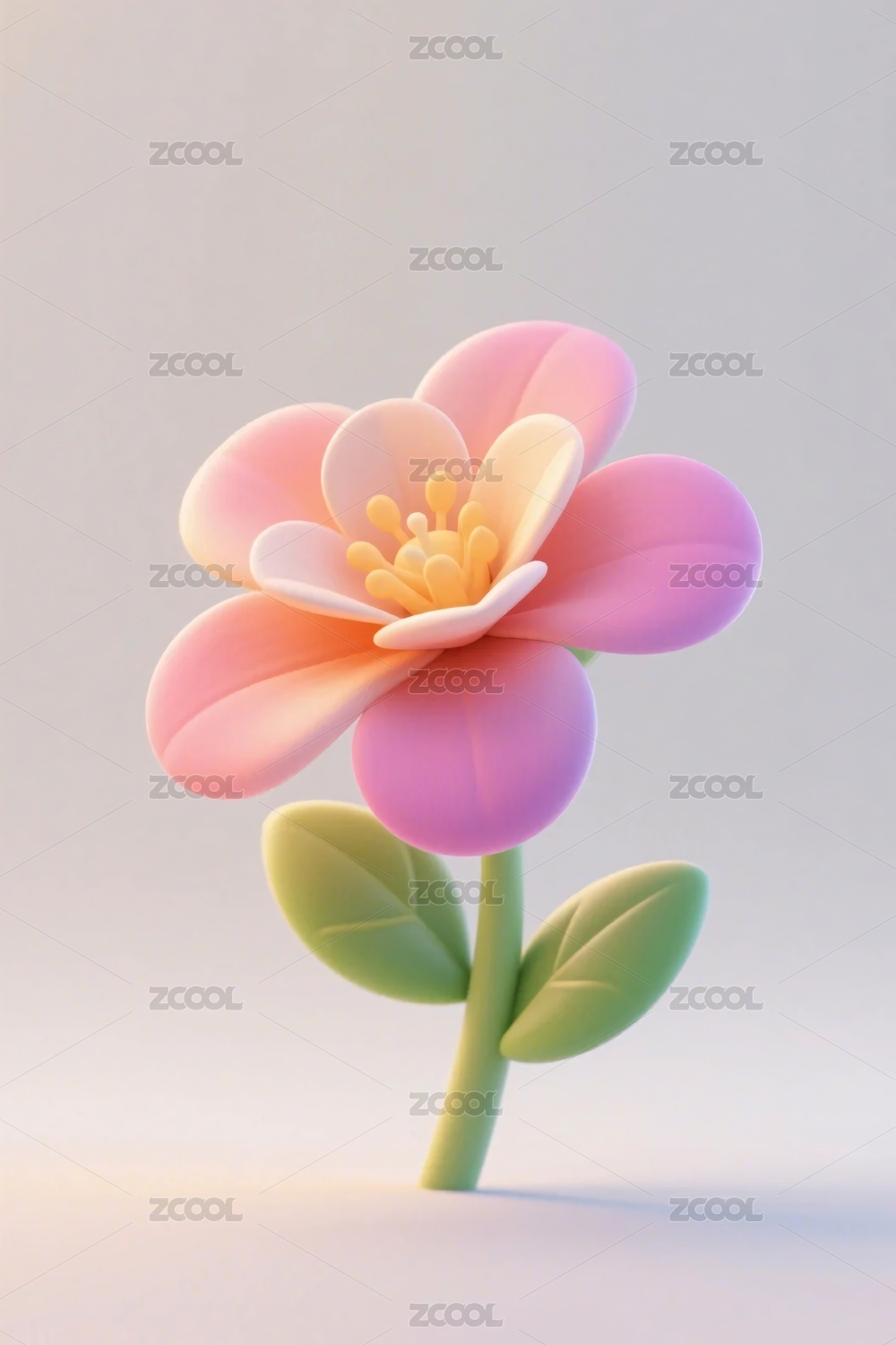 3D渲染,一朵小清新花朵,纯色背景,静物