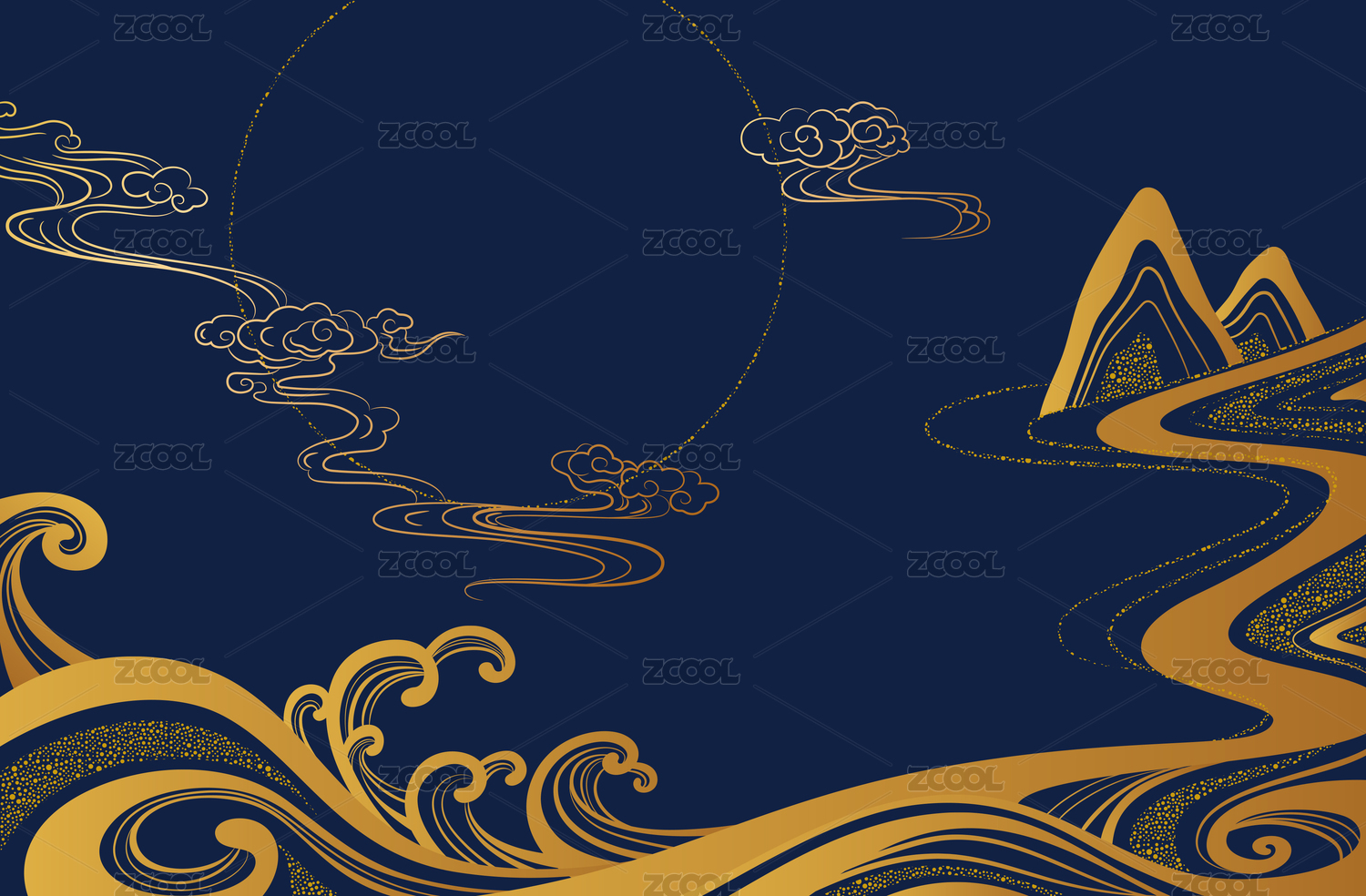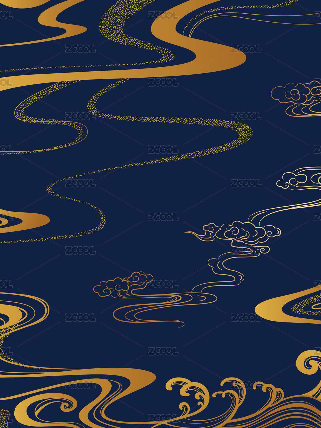 金色,抽象,中国风,水,水纹,海水纹,山,山水,云,云纹