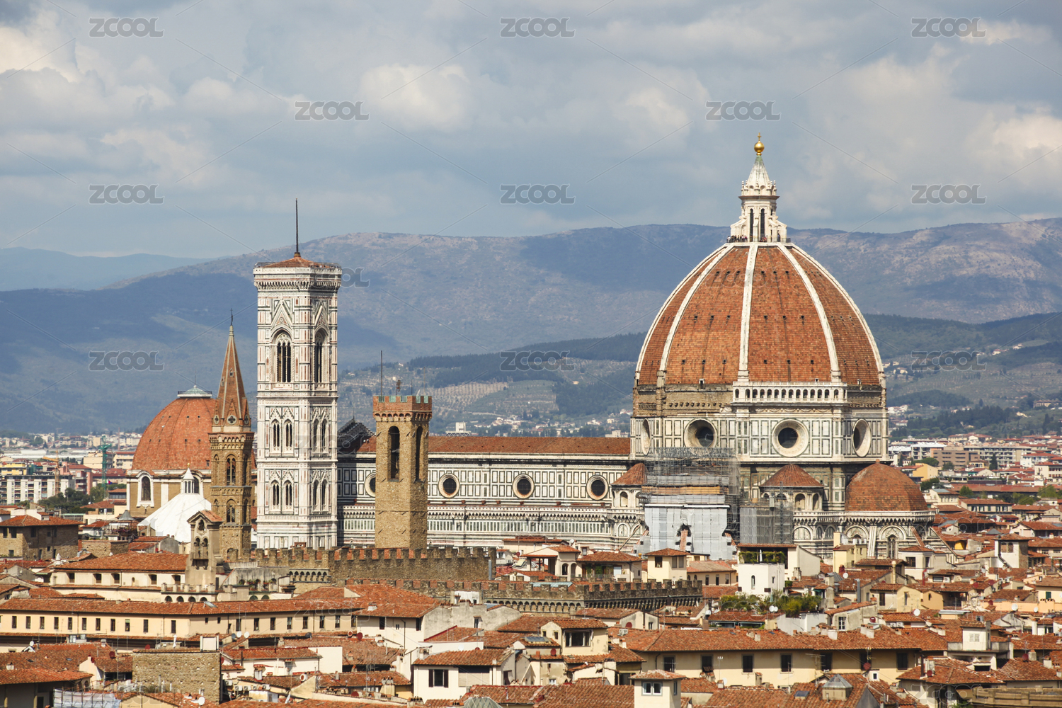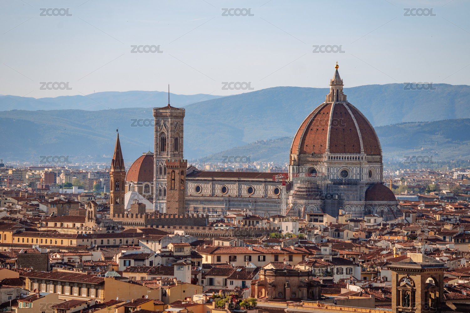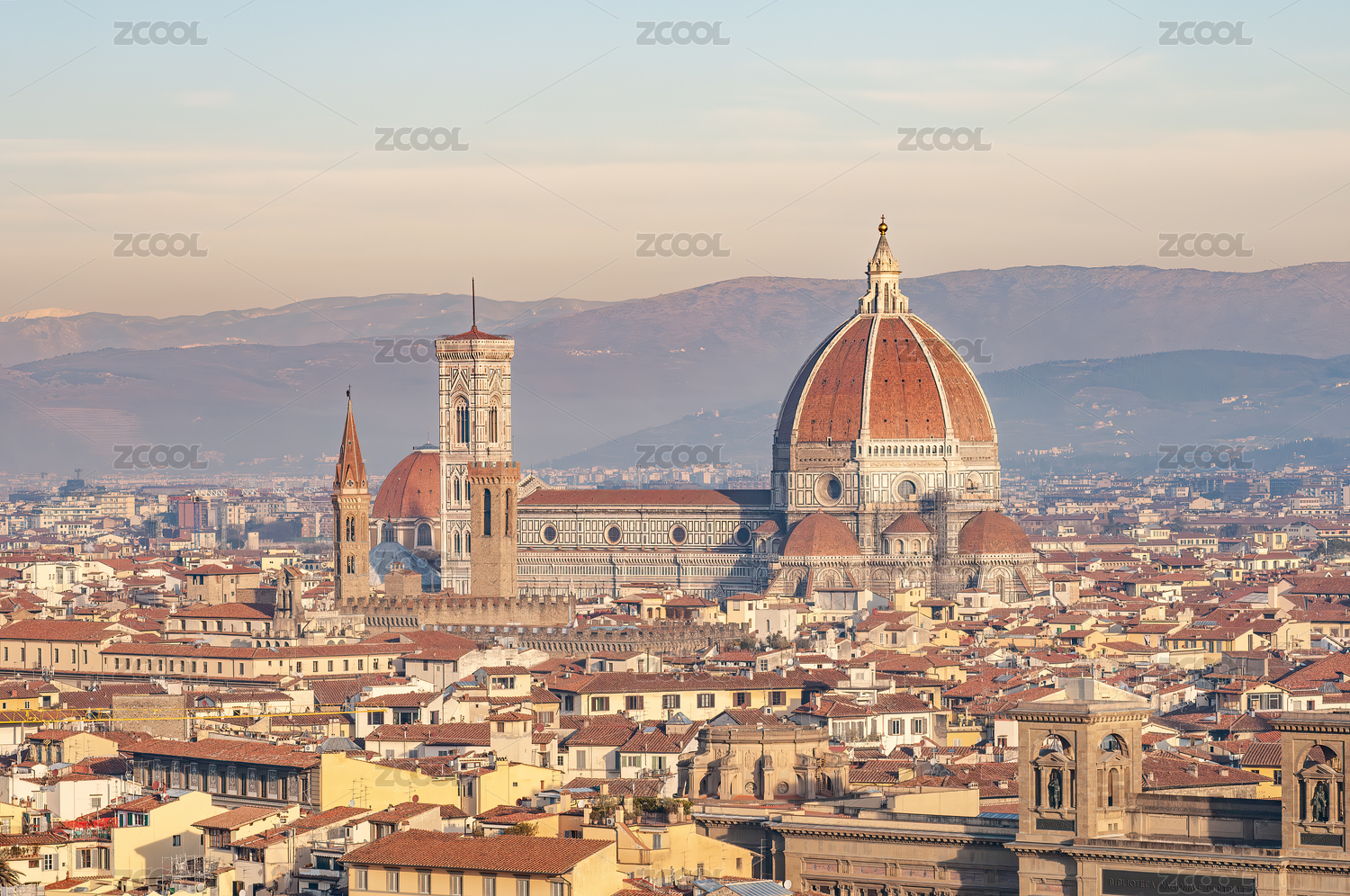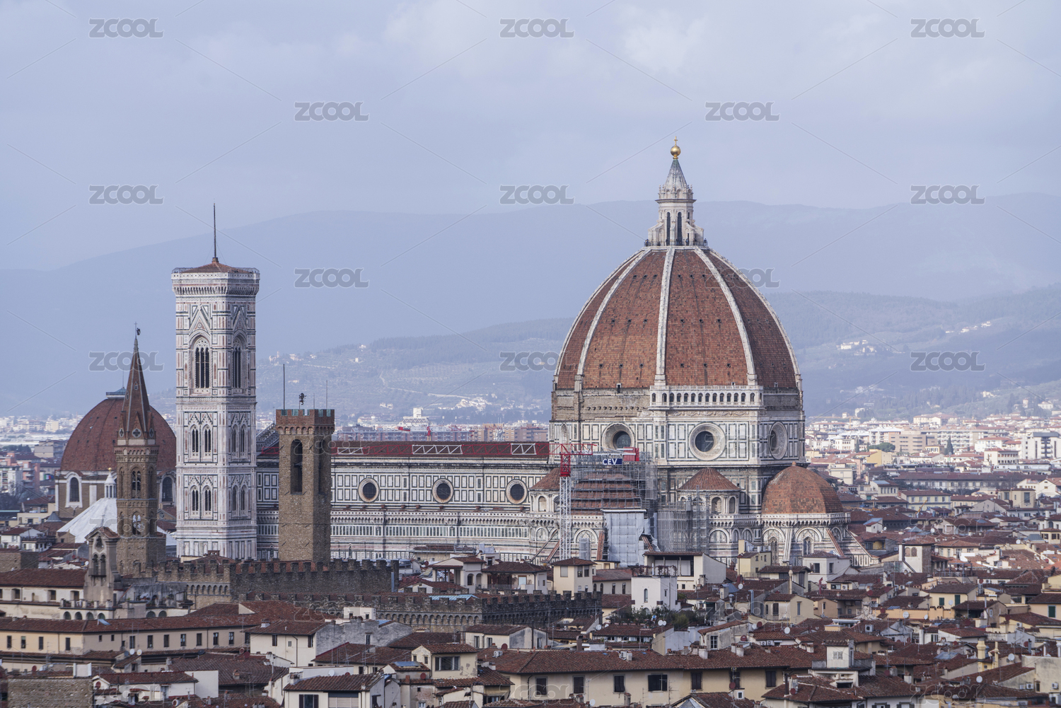 佛罗伦萨城市全景和圣母百花大教堂穹顶