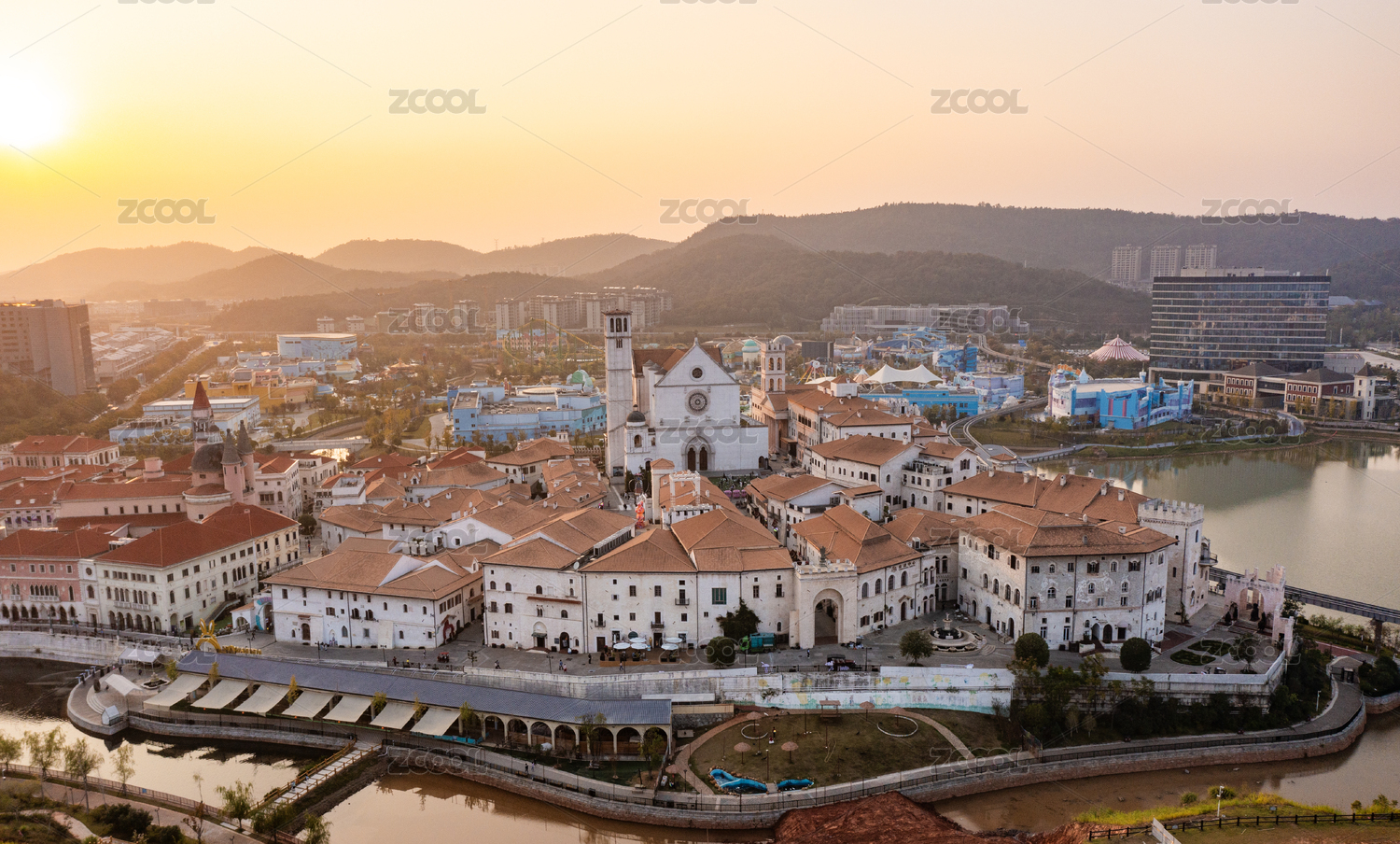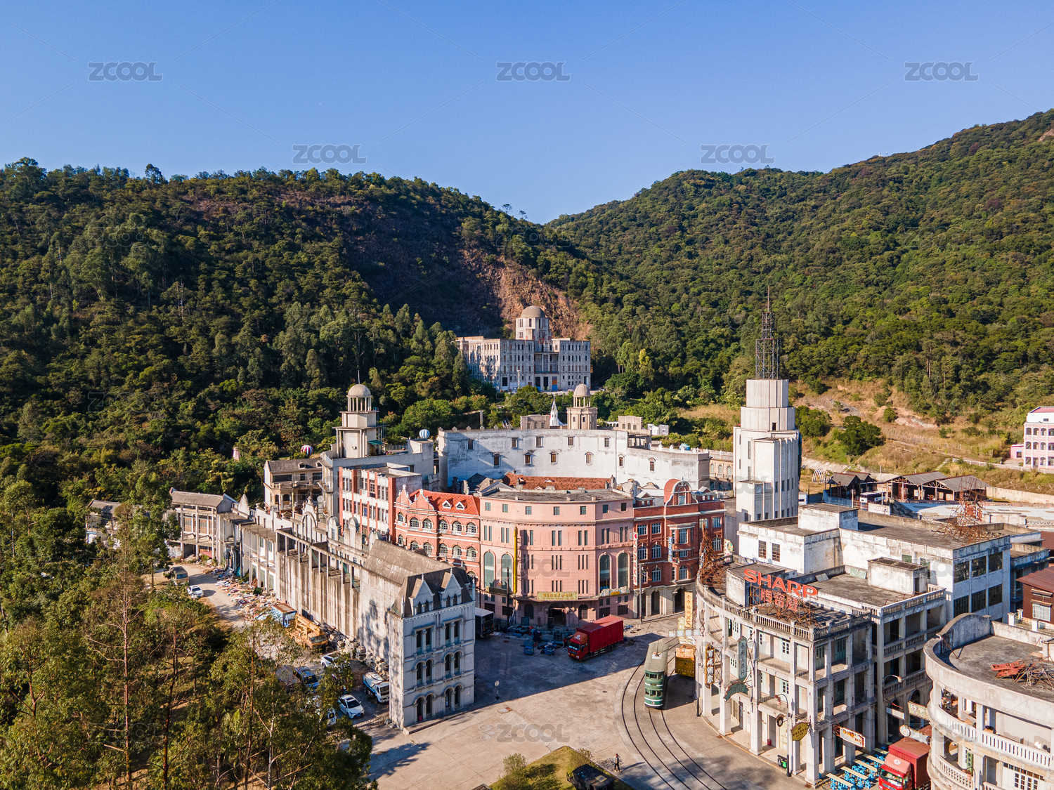 航拍中国广东省中山市中山影视城建筑群