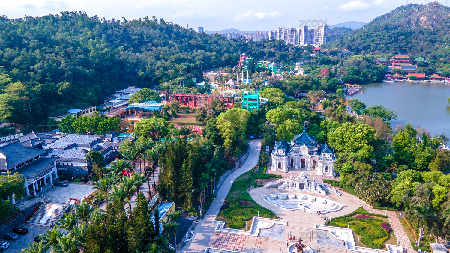 珠海城市航拍圆明新园西洋景区