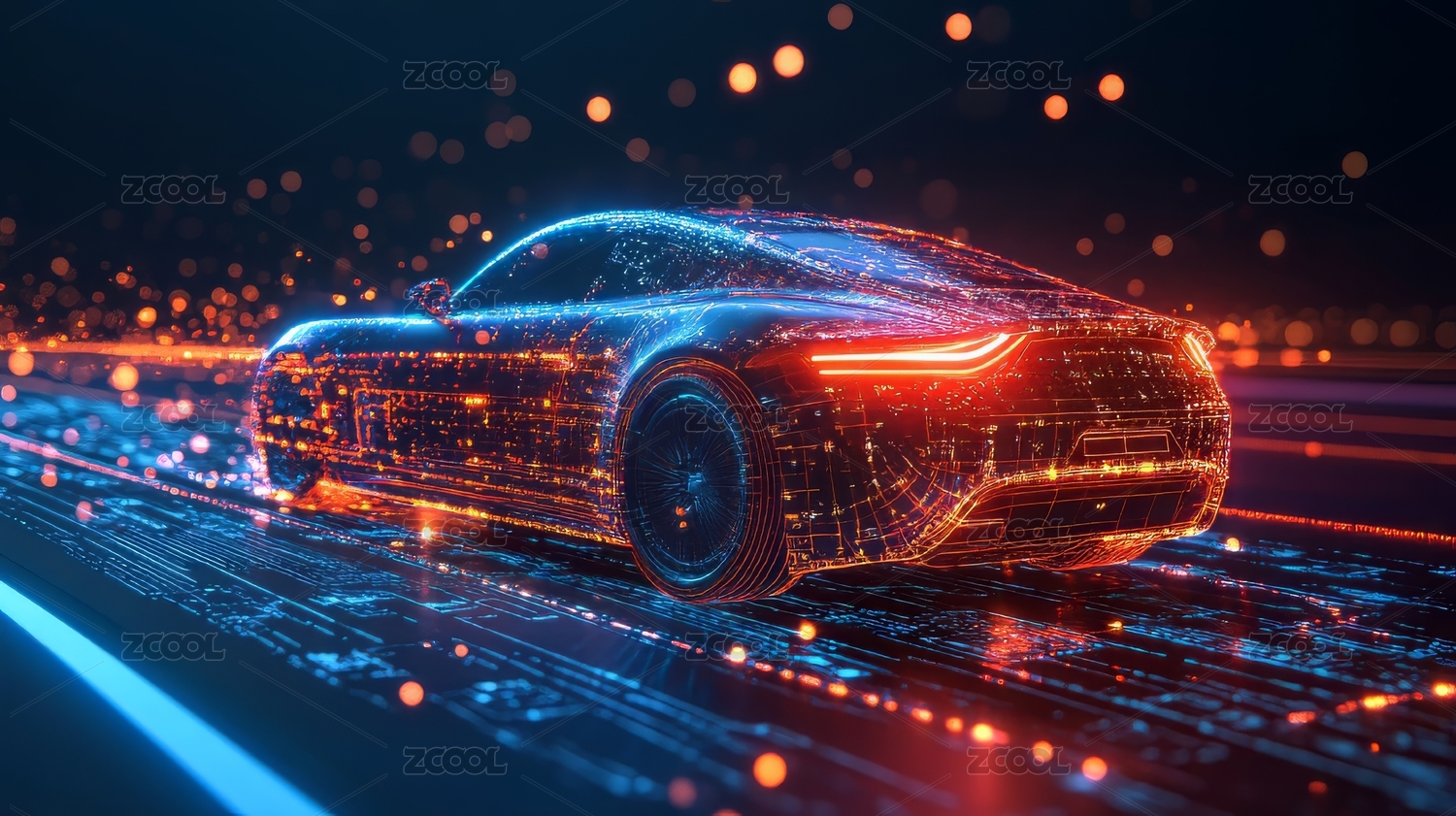 数字化虚拟网络线条组成的未来概念跑车