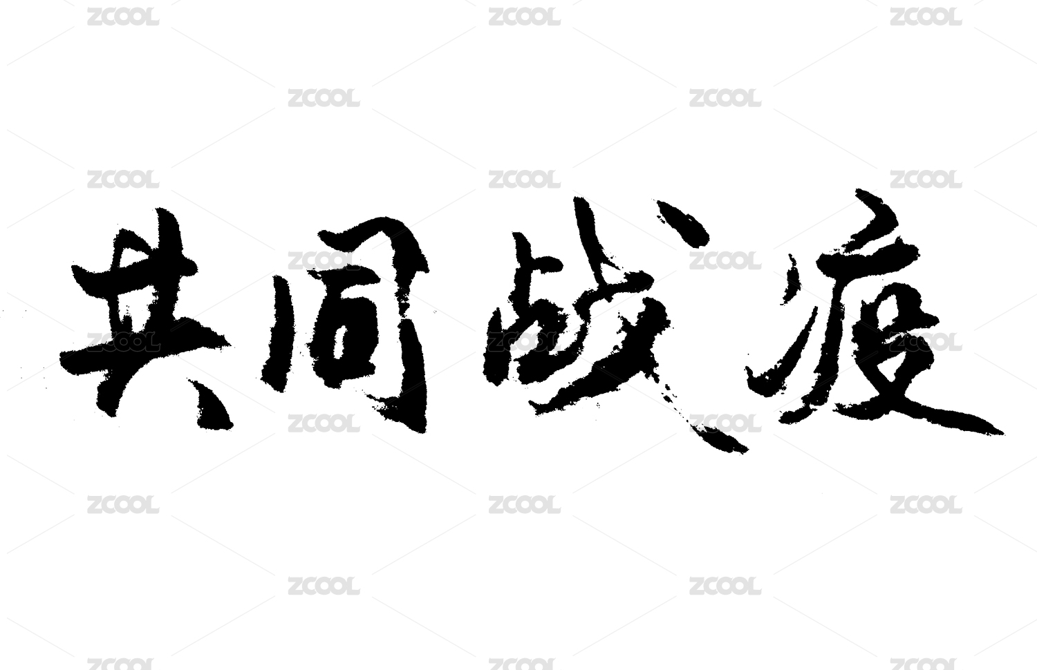 中国风共同抗疫书法字