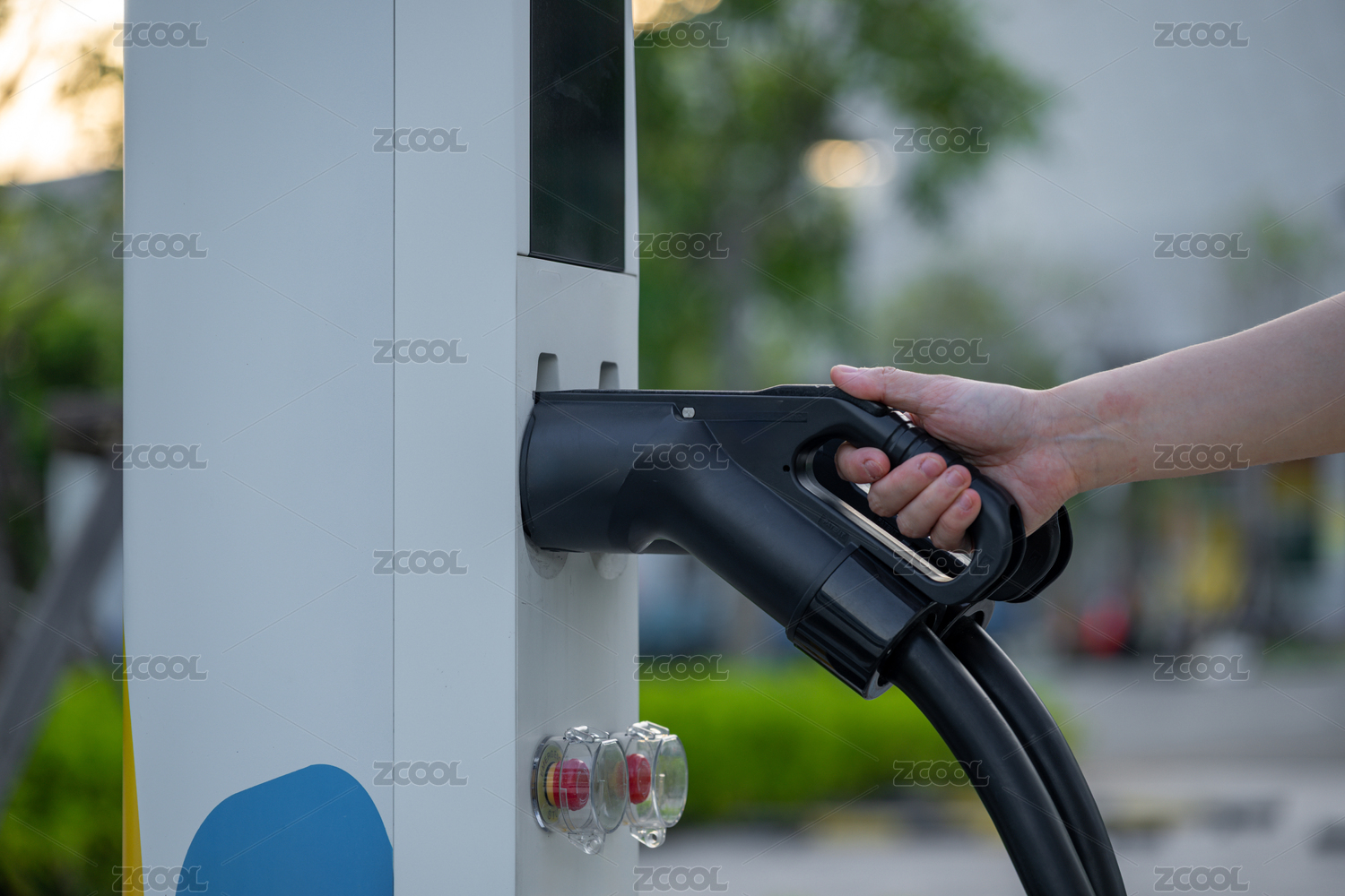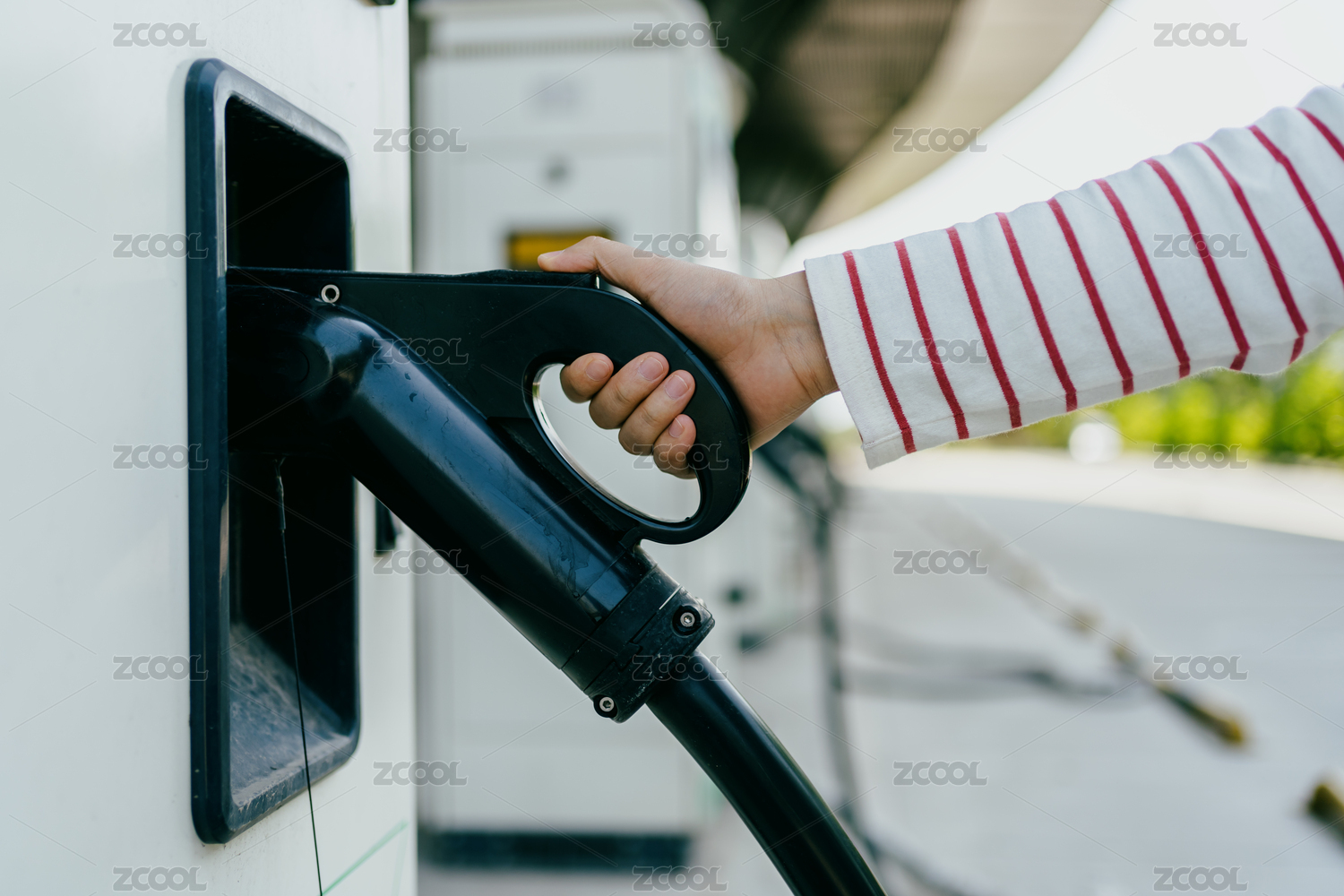 手握电动车充电枪