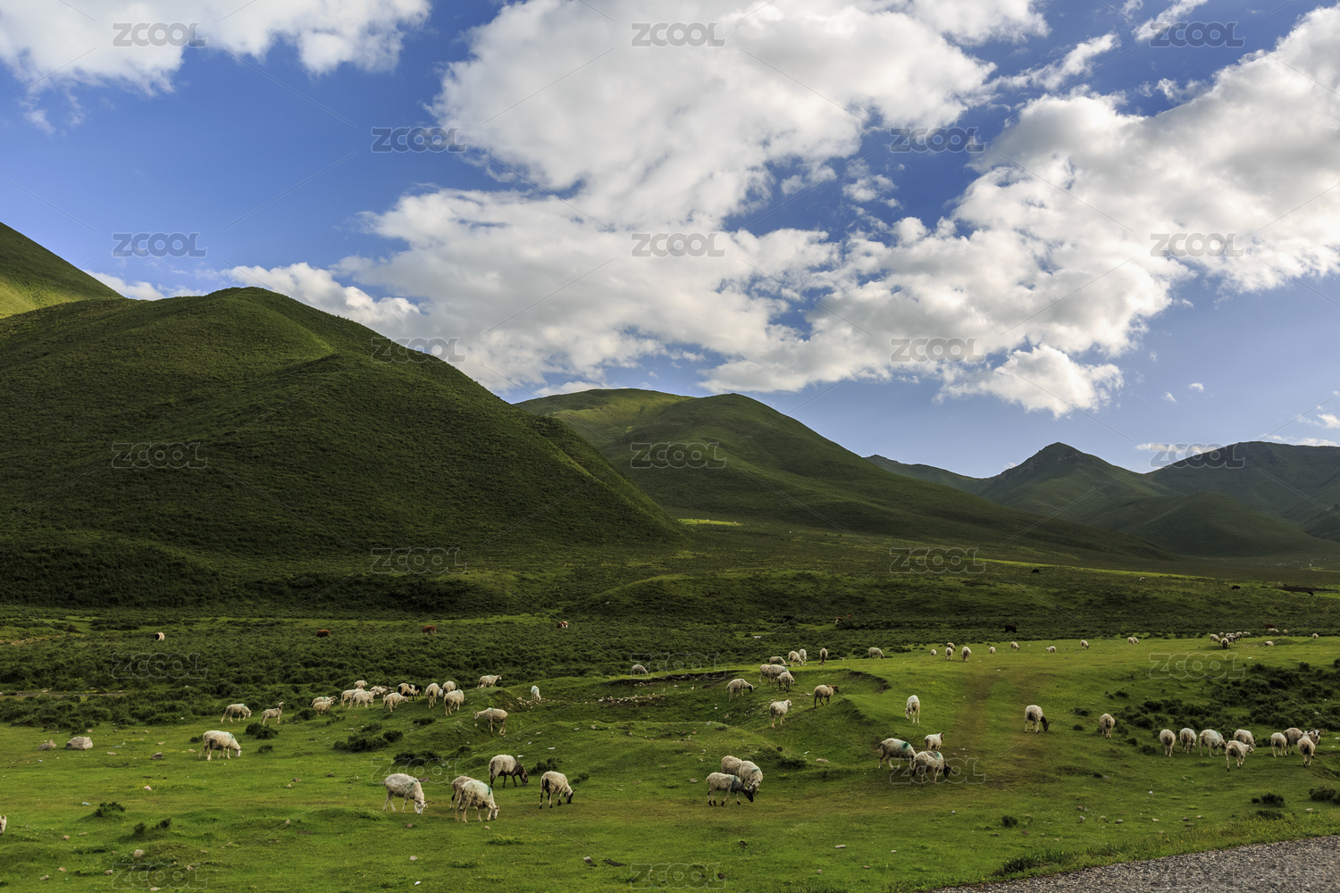 甘南秘境洛克之路连绵绿色山脉蓝天白云