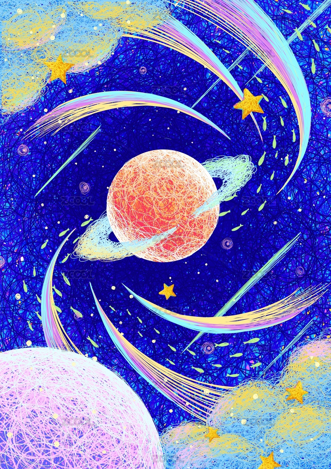 宇宙星体简约抽象图