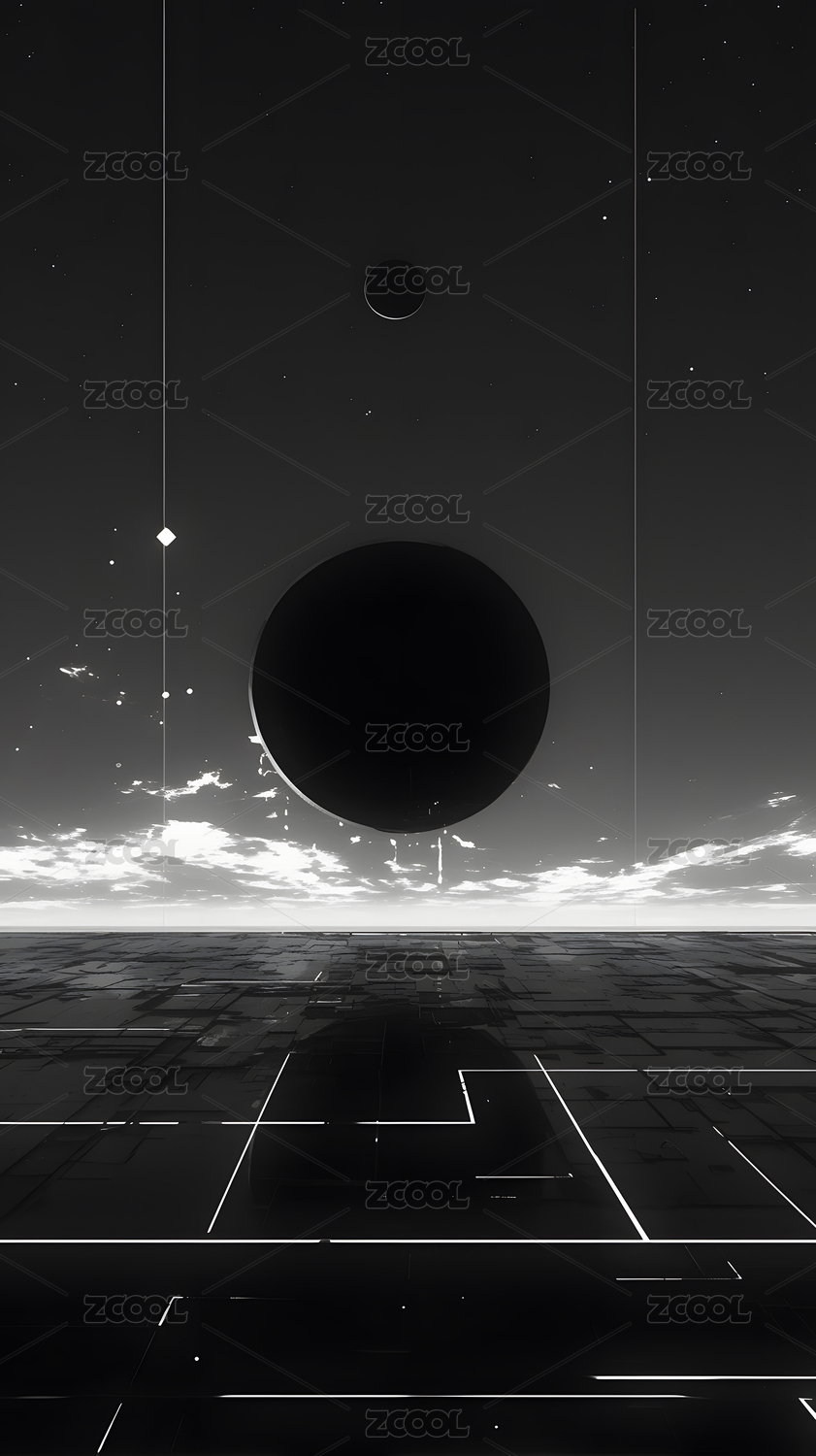 黑白噪点外星场景插画