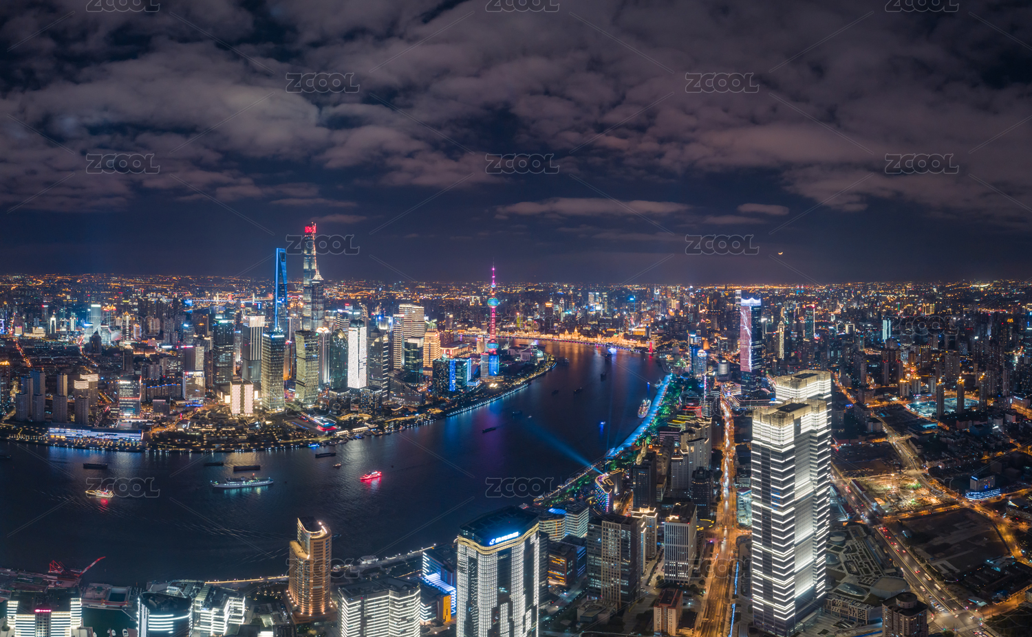 上海陆家嘴金融中心黄浦江夜景航拍