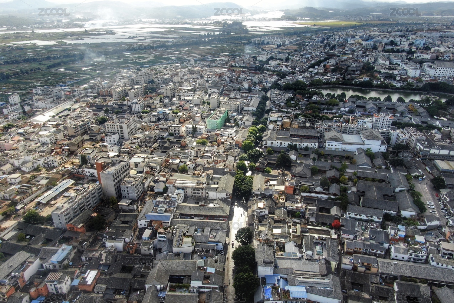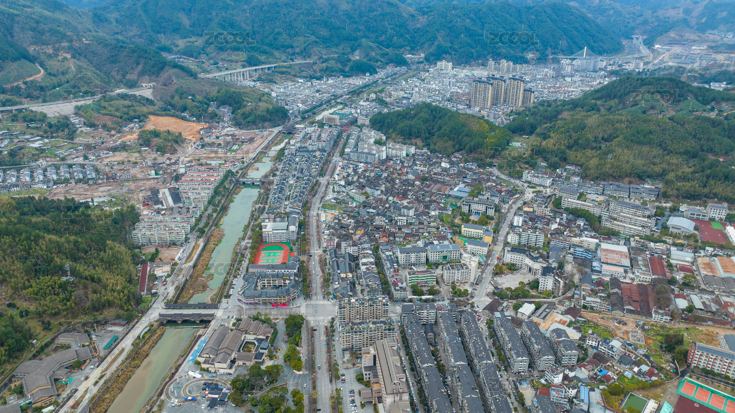 航拍浙江省台州市临海市东湖景区紫阳古街