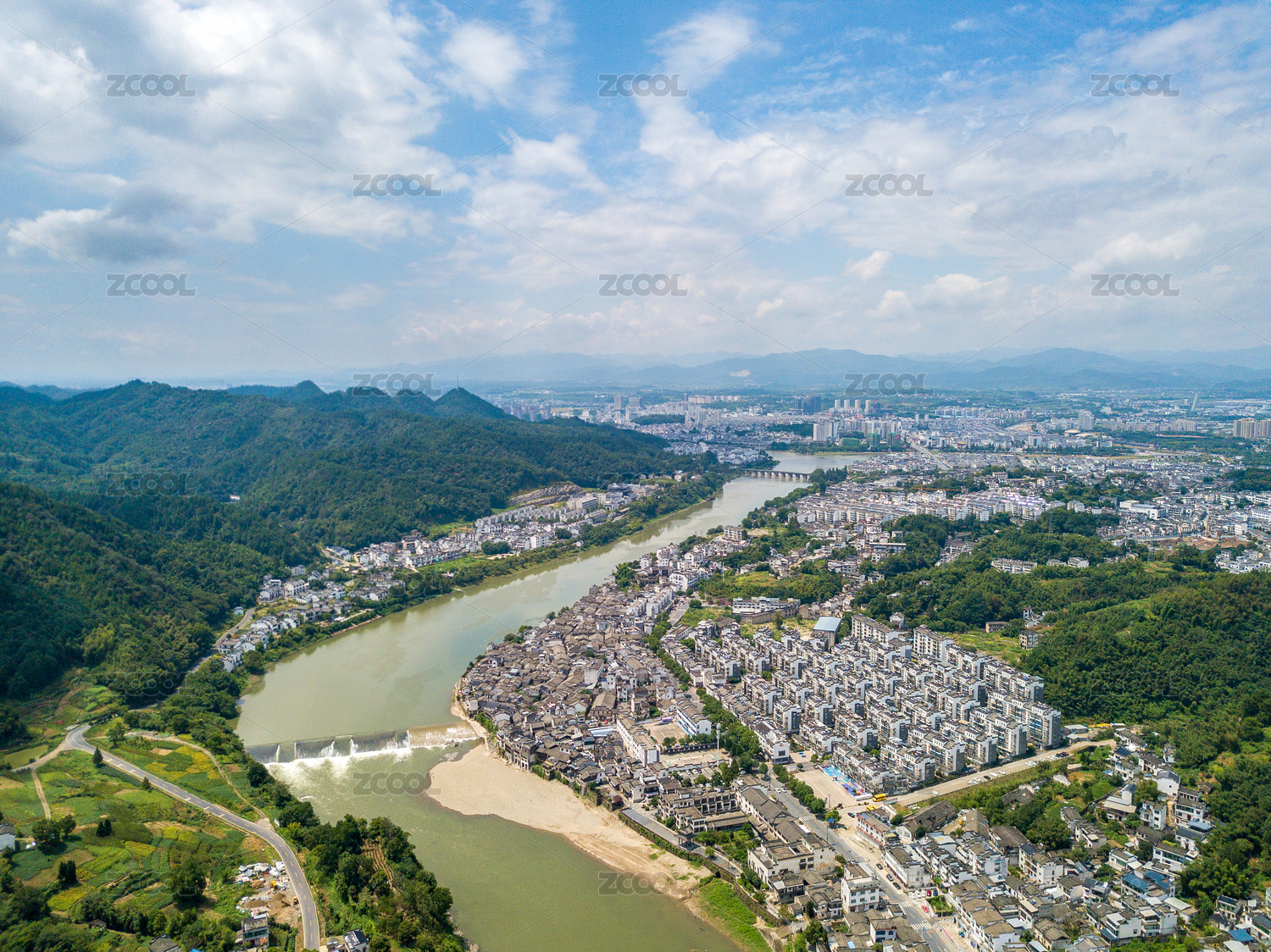 中国安徽省黄山市歙县鱼梁坝景区航拍