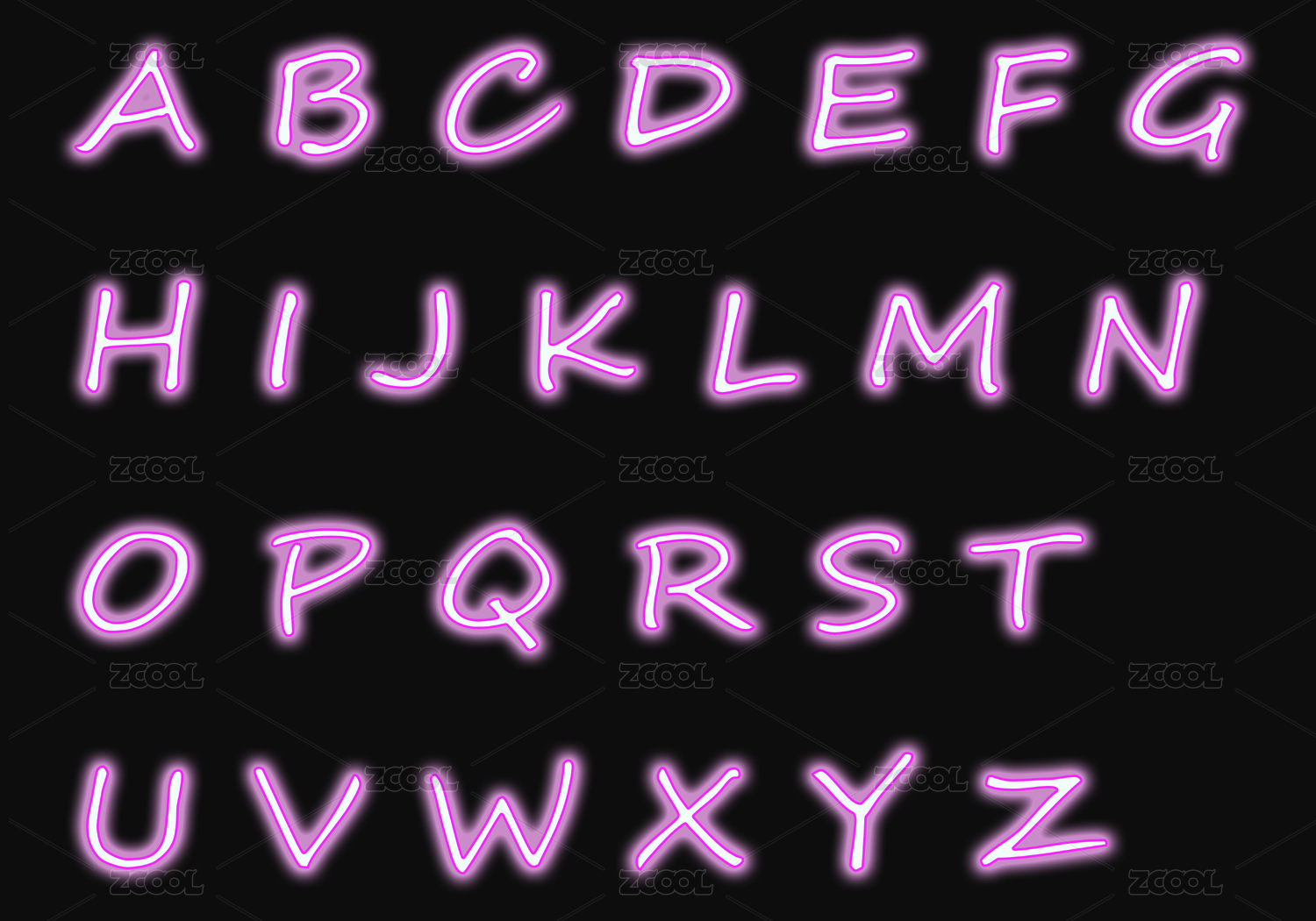 斑斓的独立彩色英文字母发光霓虹灯插画