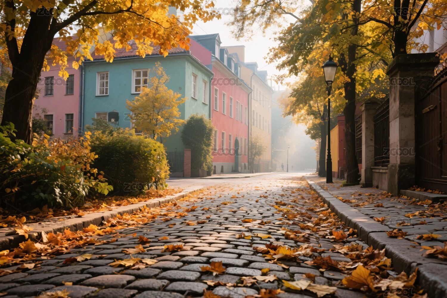 秋日铺满落叶的彩色街道