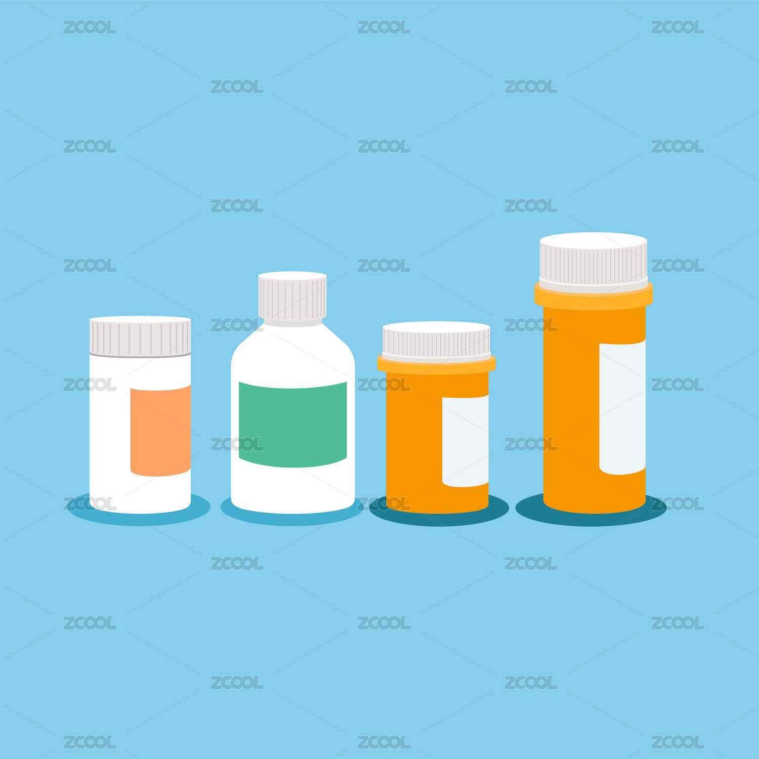扁平风装在药瓶里的药丸和一颗颗药矢量插画