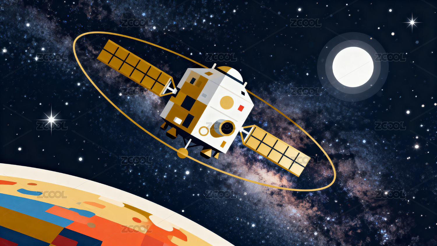 插画,背景,蓝色,夜空,星球,太空,飞船,科技,探索,科学